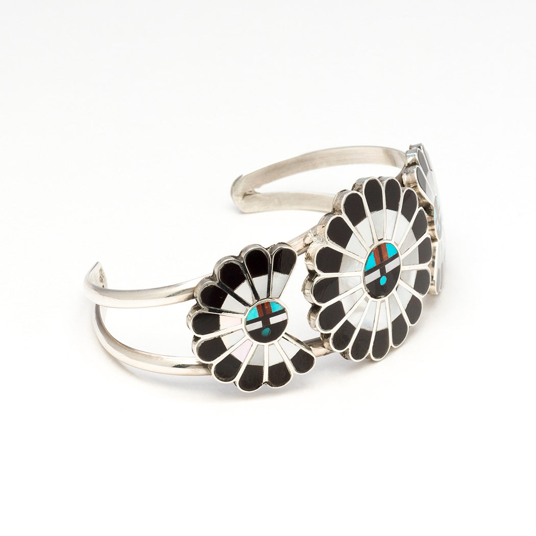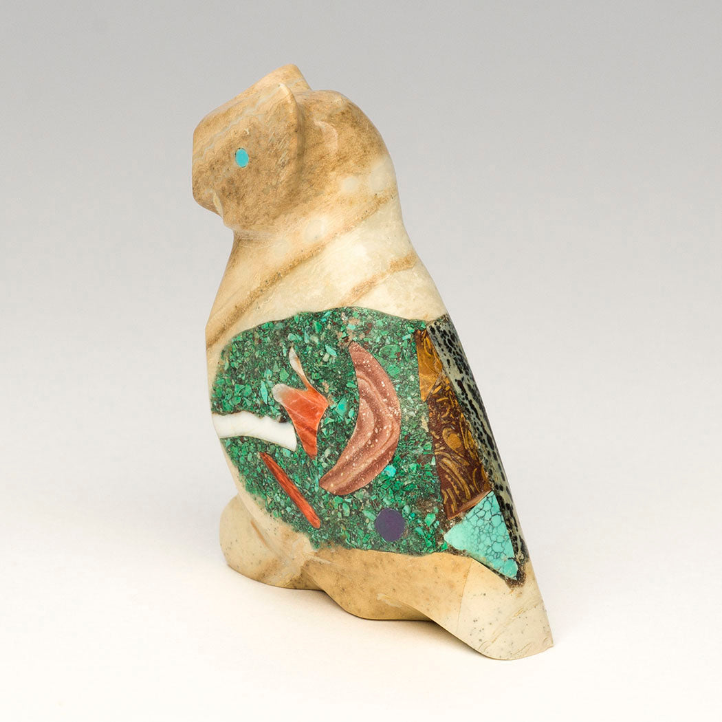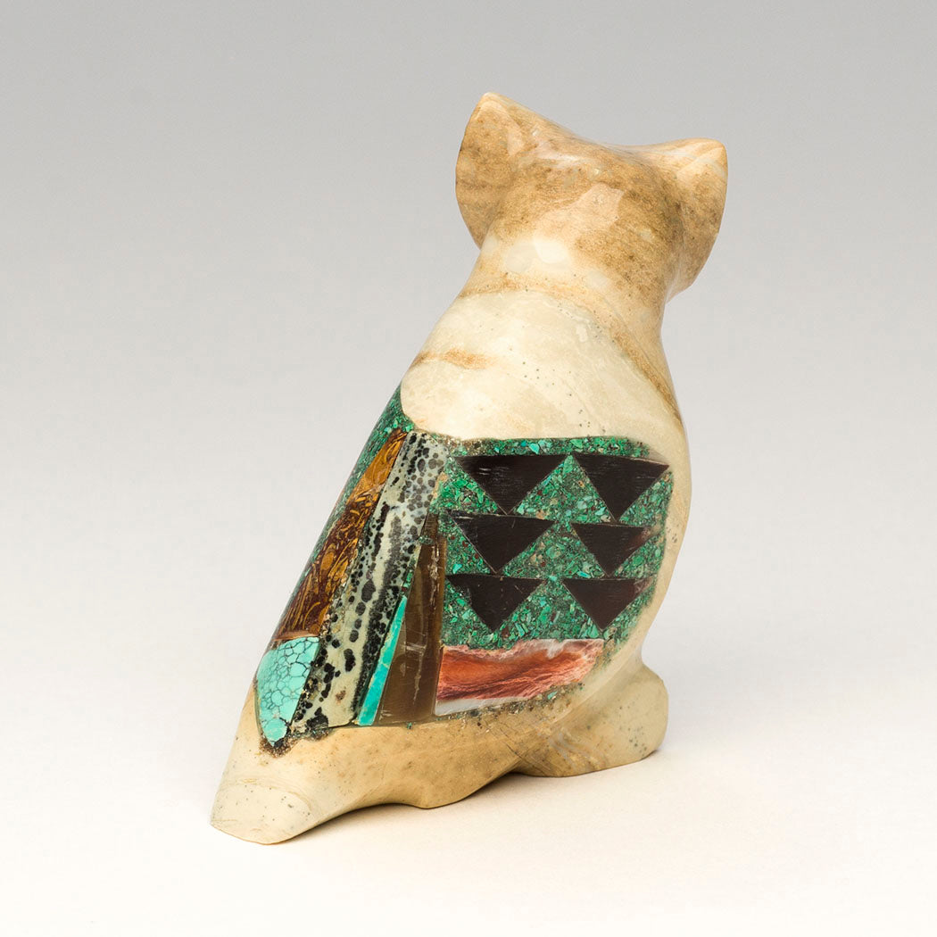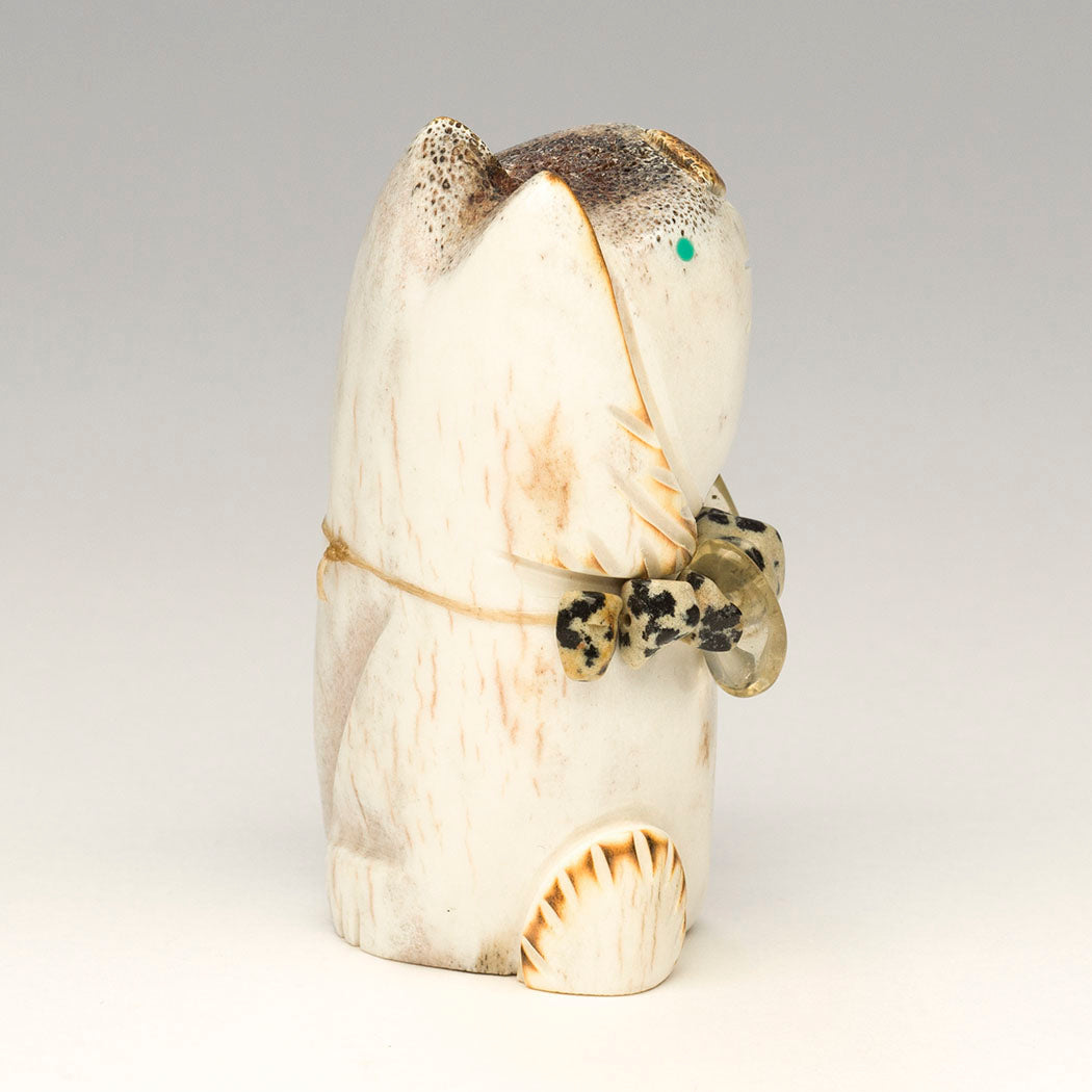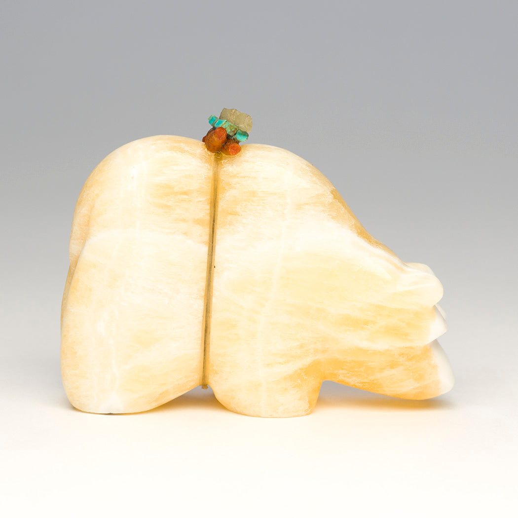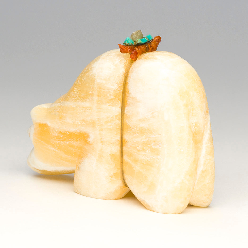 Felinae. With about 33 species, this group includes bobcats, cheetahs, ocelots, cougars and our beloved domestic house cats. Melvin Sandoval's poised wildcat as bobcats are sometimes called, is presented in an onyx with rustic colors blessing it with hunting camouflage. Fur changes color depending on the season too. Thankful for the wildcat's independent ways, Melvin secured a lovely offering bundle from a gorgeous serpentine point, bright turquoise and heishe beads. Approximately 2" long, 5/8" wide and 1 3/8" tall.