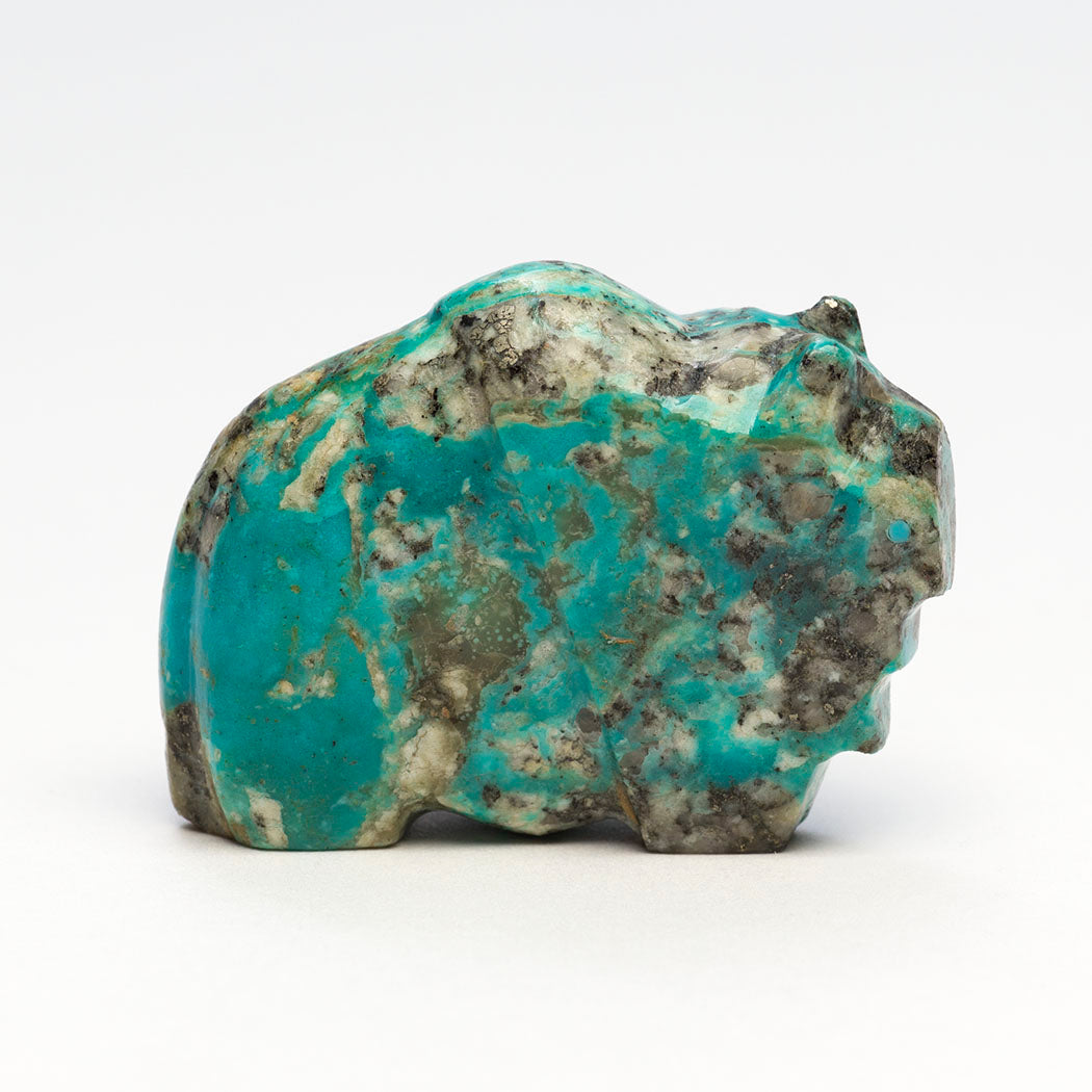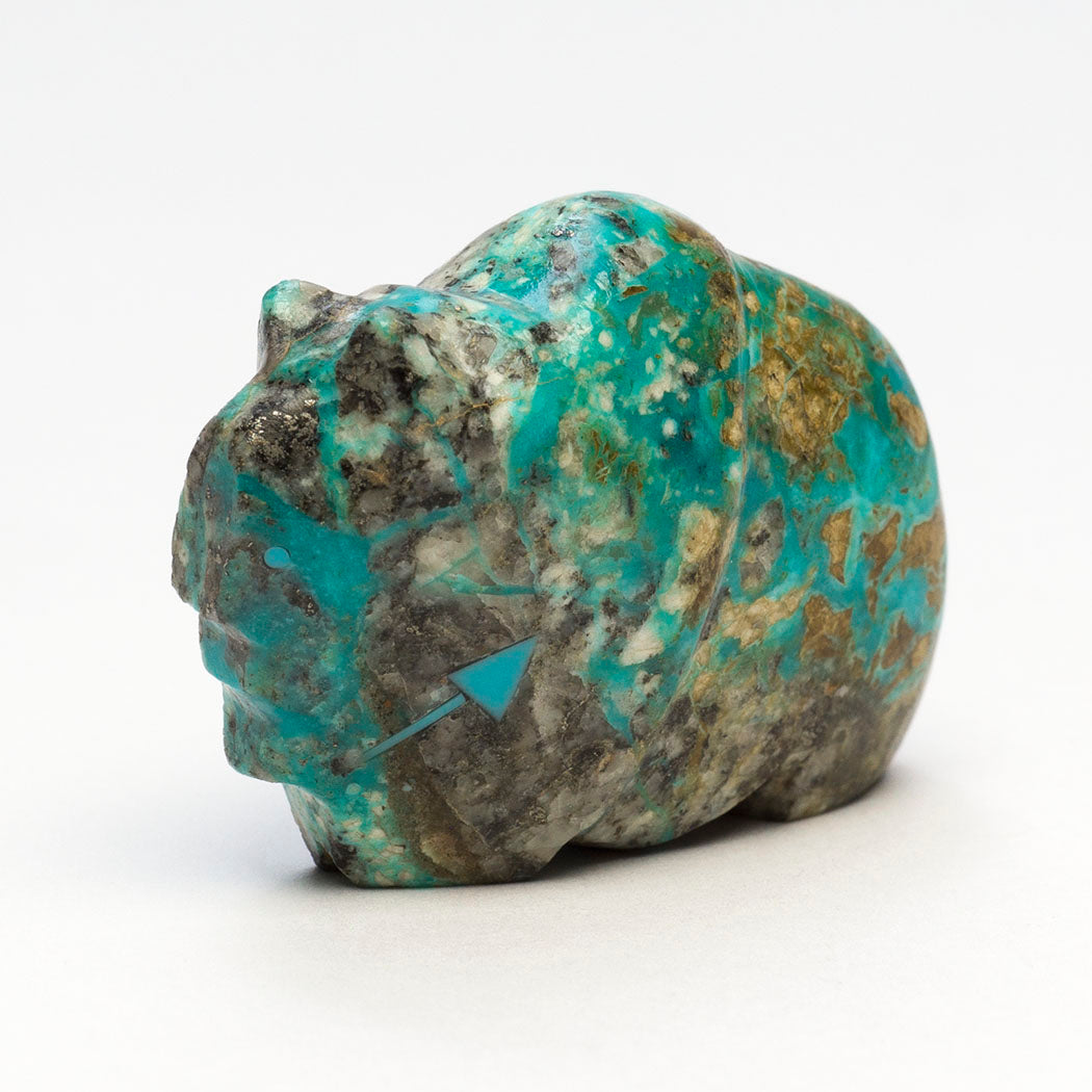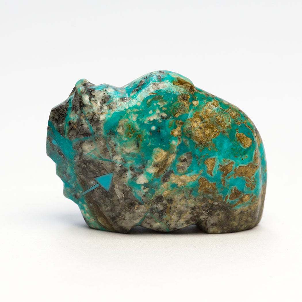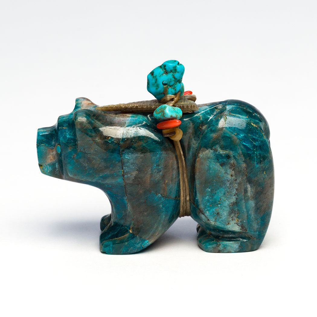Mountain Lion (puma, leopard, panther or cougar) hunts through eyes from crushed lapis and turquoise. Because mountain lions are stealthy in nature, Zuni men will bring along a mountain lion carving for success in the hunt. For the A:Shiwi (The People) a mountain lion is the Eldest Brother and most important of the