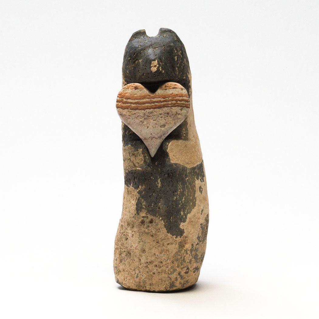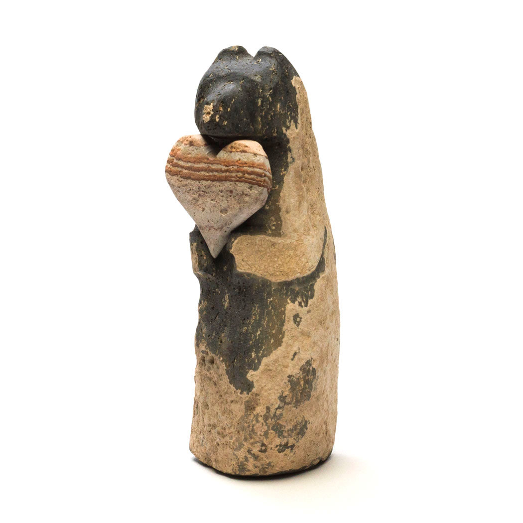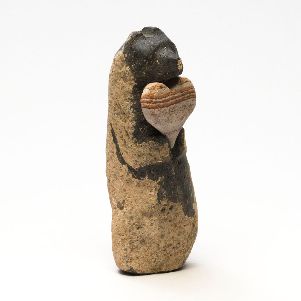 The beloved autumn season inspires creativity and reflection on life's changes. Salvador Romero's Bear is carved from a fall-colored found stone that celebrates a simple beauty only Mother Earth could create. The loving bear is covered in wonderful desert varnish which is a natural incrustation formed from microscopic organisms and cemented clay particles. A removable heart offering also hewn from found stone accompanies the bear. Dimensions in their entirety are about 6 7/8" tall, 2 5/8" wide and 2 3/8" deep. A fabulous 2-piece set to remind you of the spectacle of fall foliage and a connection to creation.