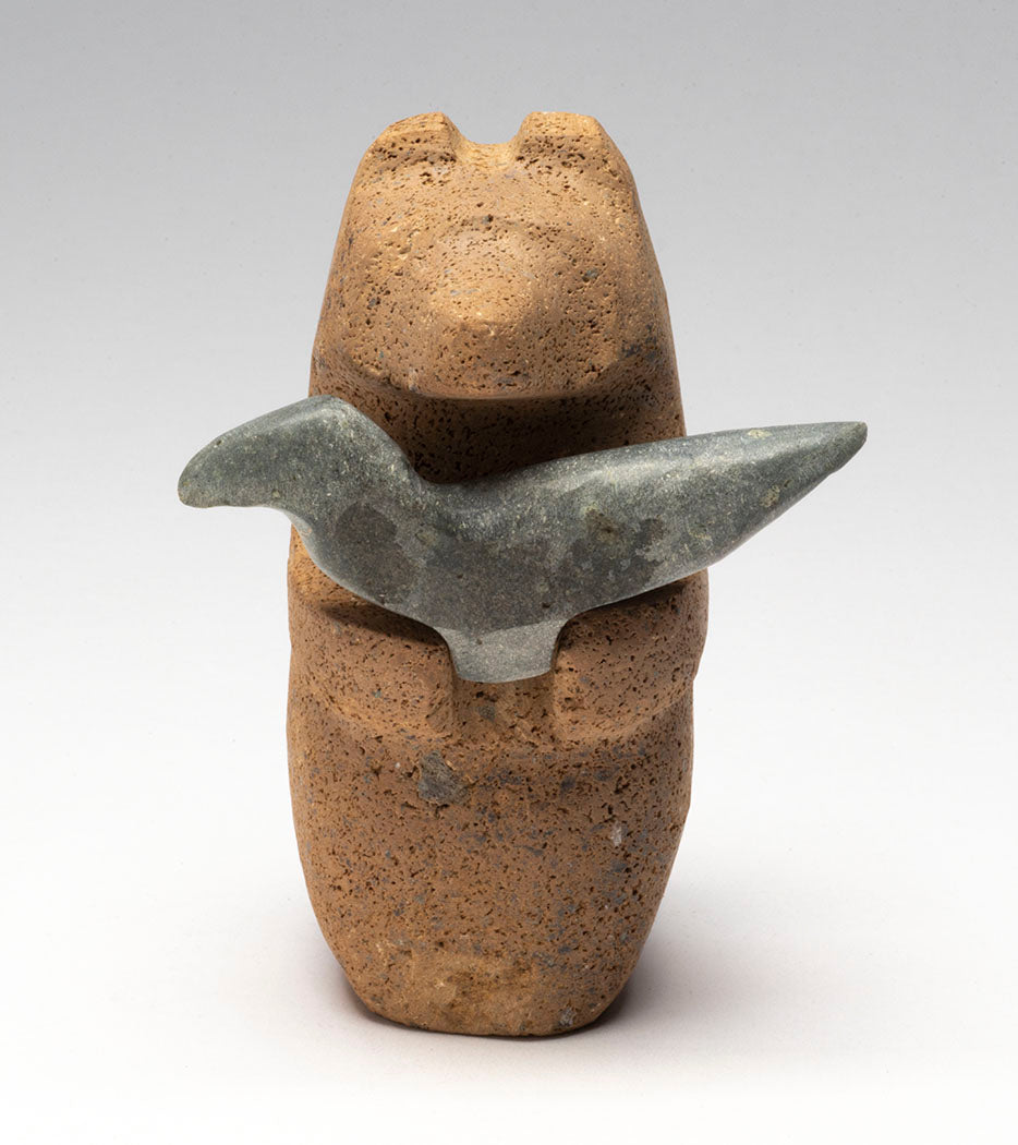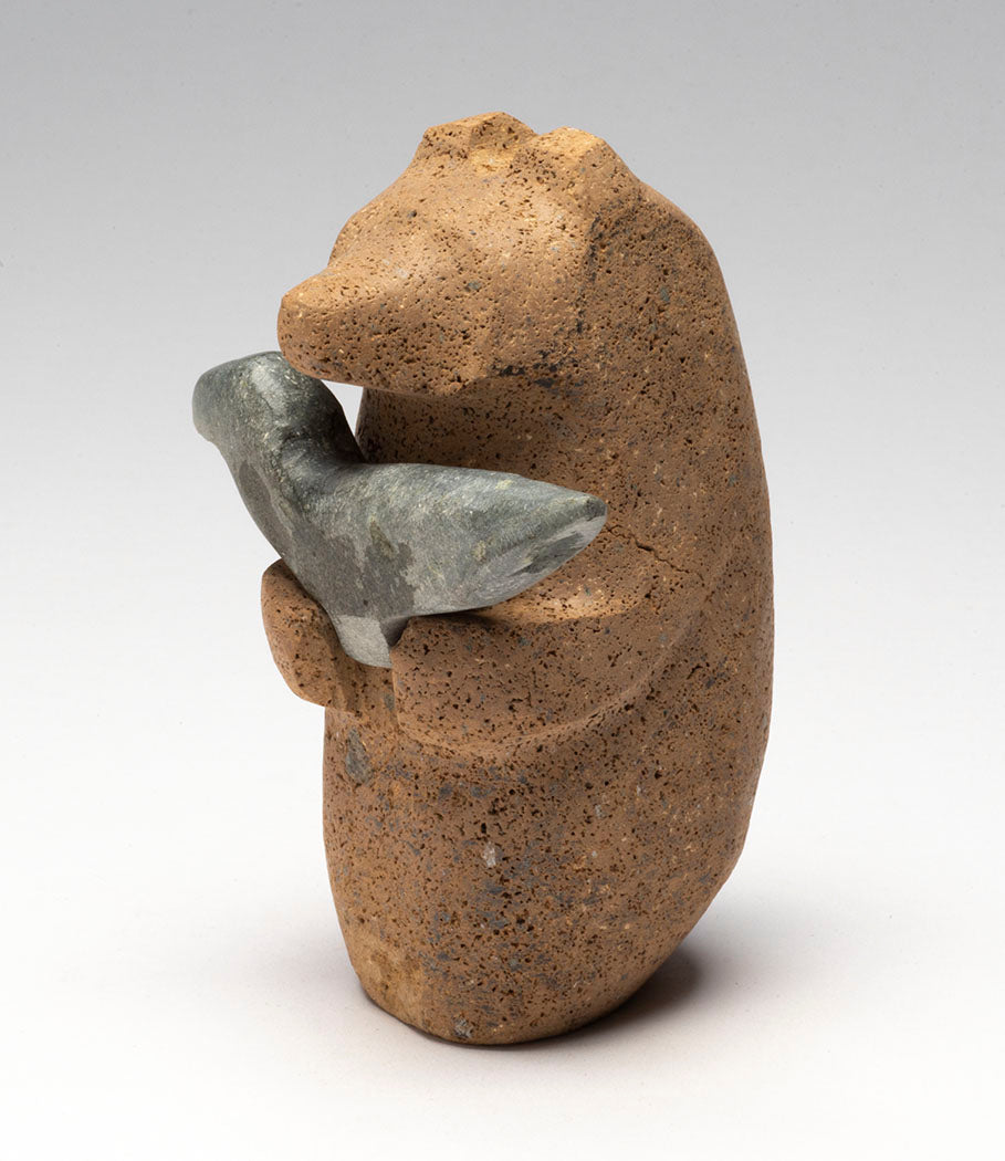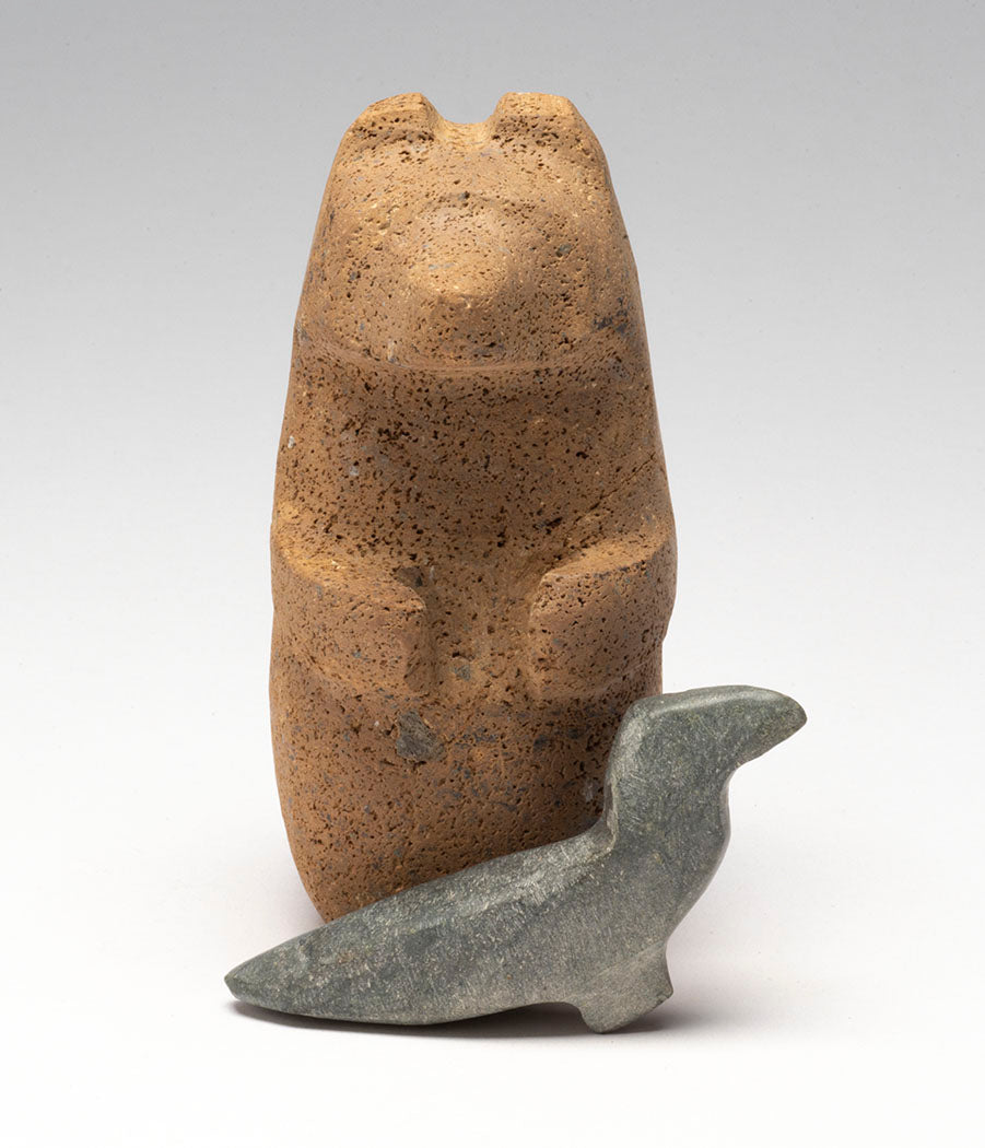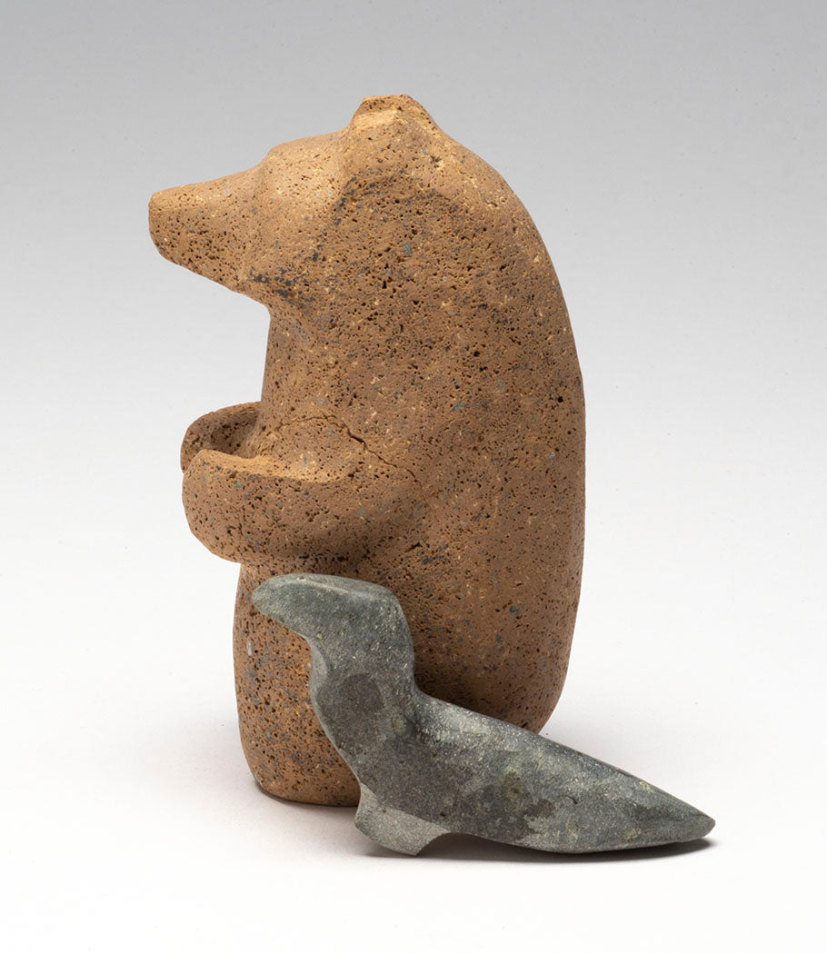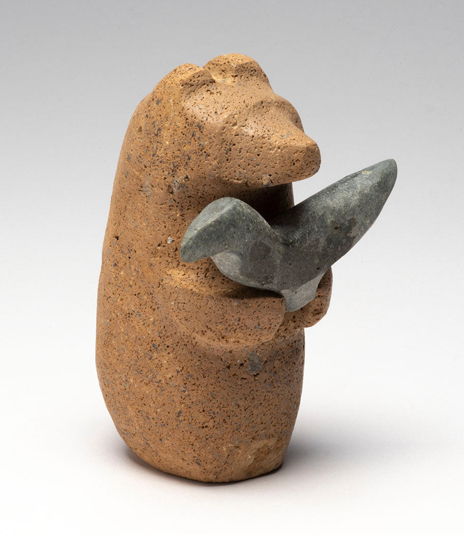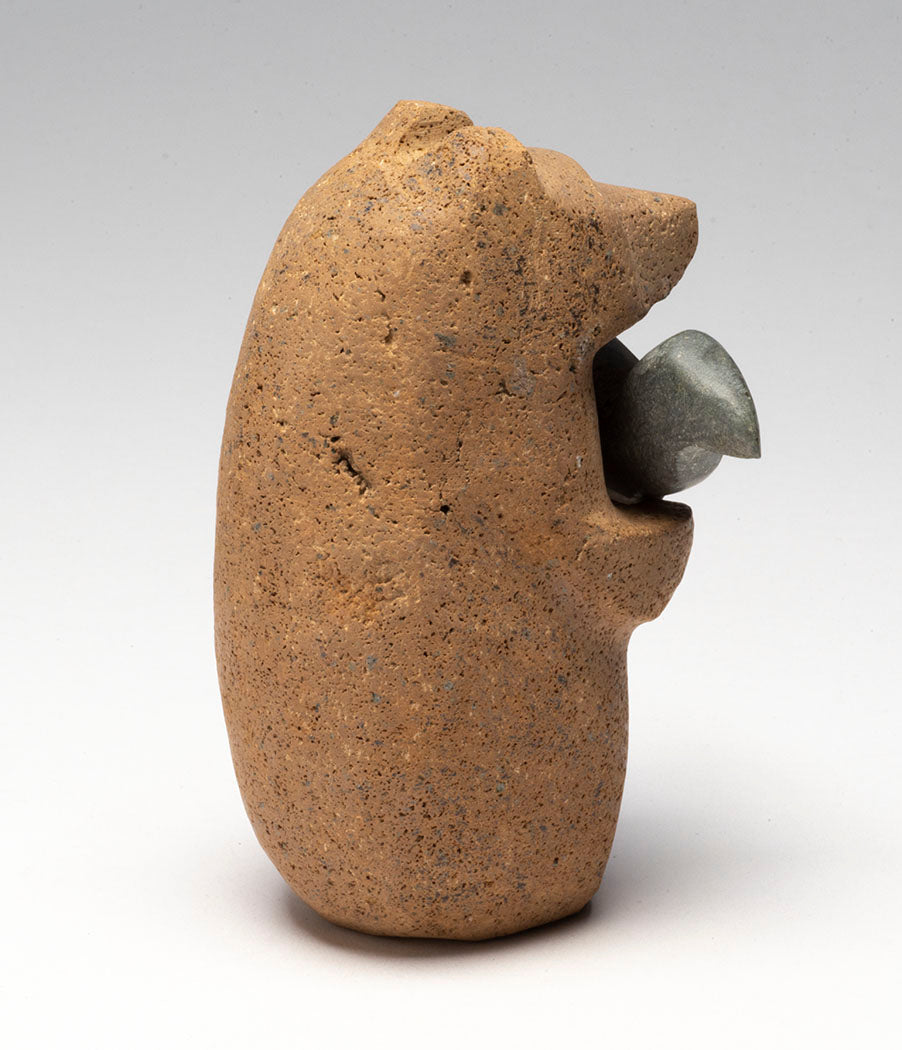 In their innocent beginnings, Bear cub and Raven chick grew up united without judgement, bias or any preconceived ideas between them. Remaining in friendship and understanding, they continue on life's path. The bear is approximately 4" tall, 2" wide and 2 1/2" deep, while the corvid comes in at about 3" long. The found stones are lovely in unique color and texture. Don't miss this amazing 2-piece set by Salvador Romero he calls "friends".