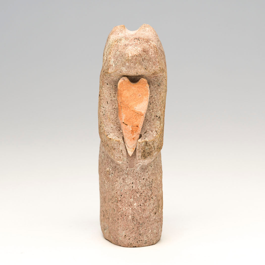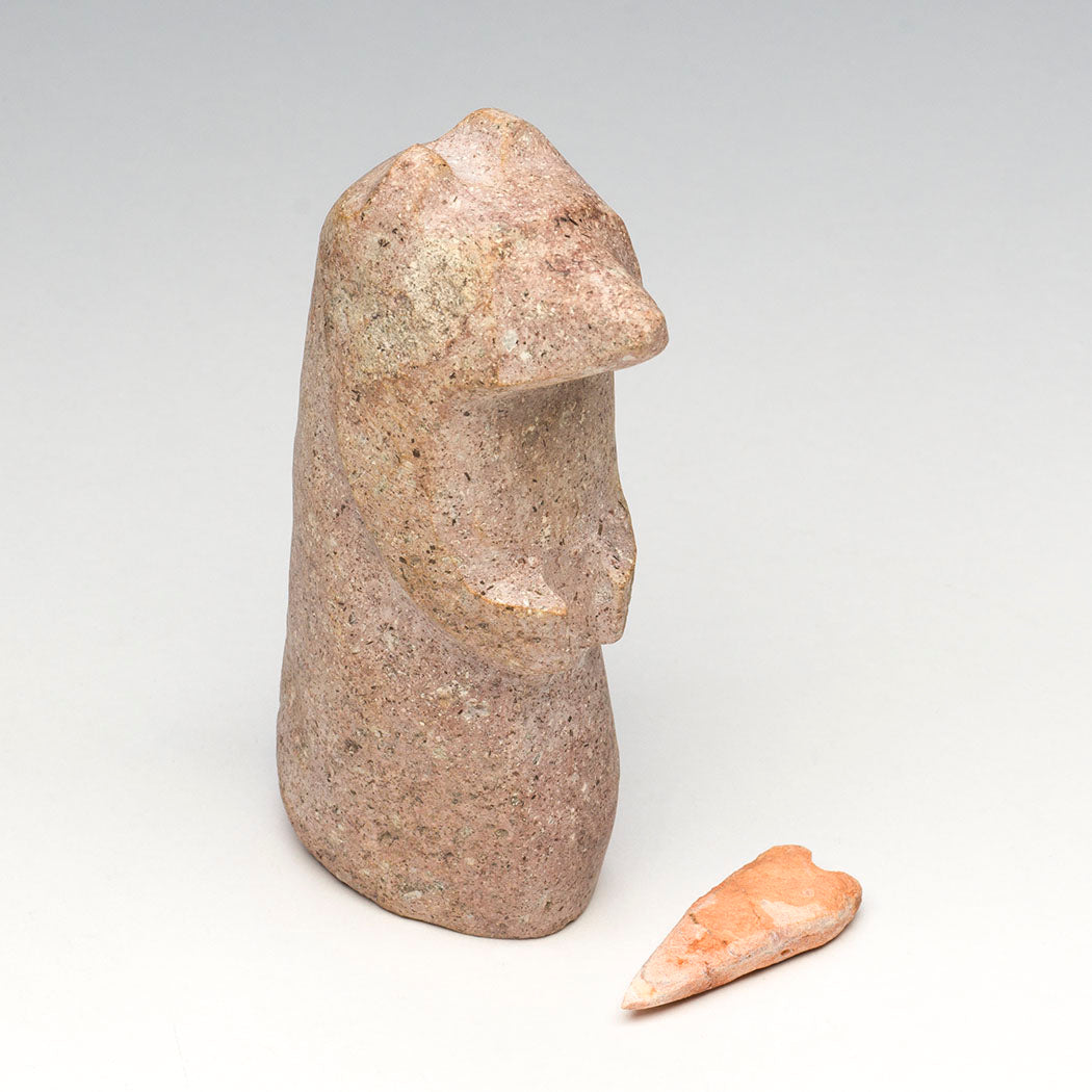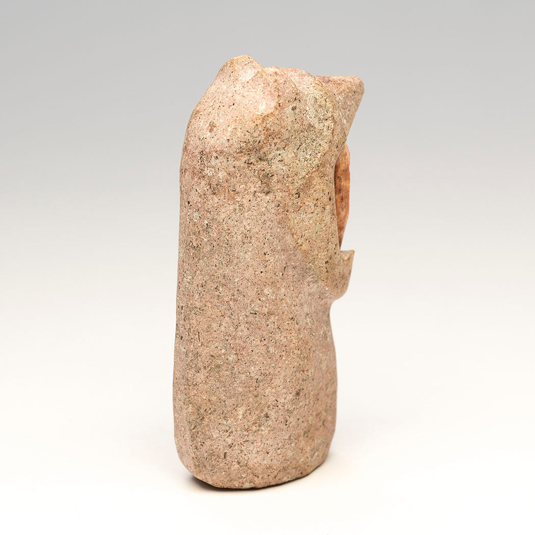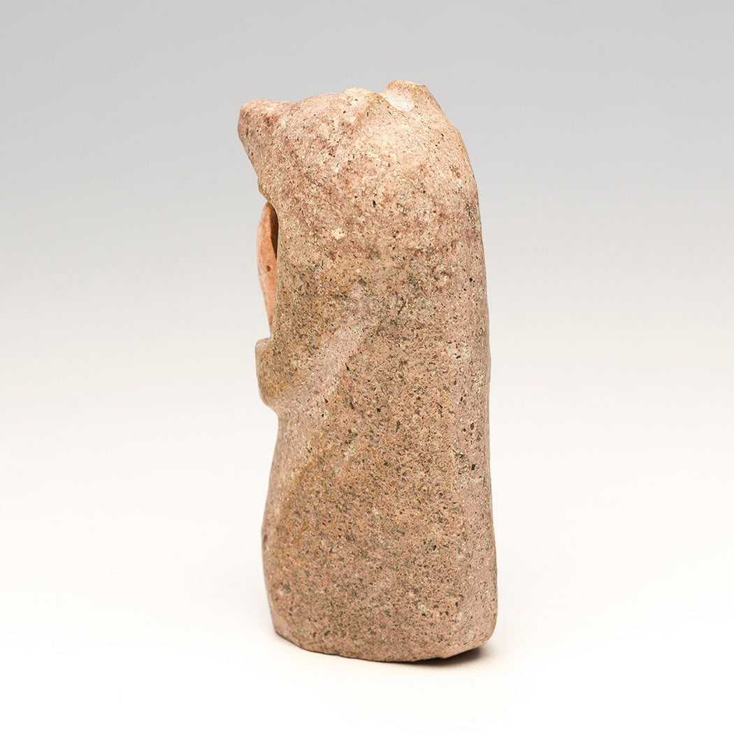 When artist Salvador Romero walks into our Keshi gallery, we always look forward to his latest offerings and an insightful visit. We recently asked him how he chooses the rocks that he carves. He shared that "I walk near my house, 1 - 5 miles out. I just have a feeling about the rocks I carve, or they have a certain shape, or special area like a swirly rock; I know right away when I’ve found one that I will carve." At about 4" tall, 1" wide and 2 1/8" deep, his loving