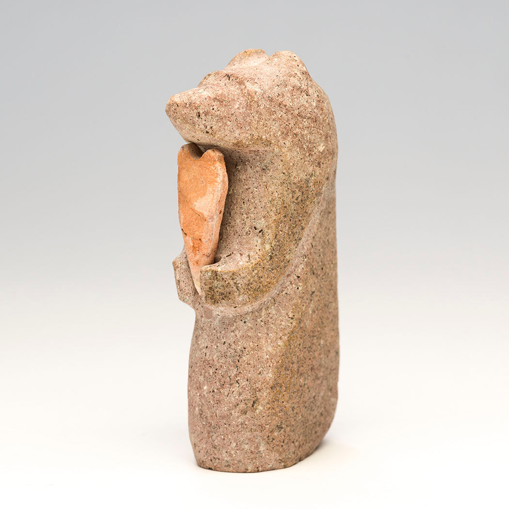 Bear with a removable heart offering will delight your Valentine. The shape of the heart is fabulously elongated. The gorgeous found stones are from Cochiti Pueblo ancestral lands.