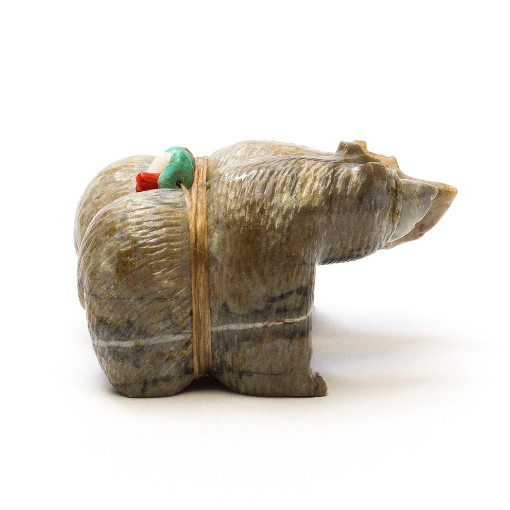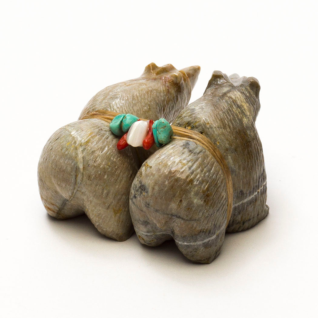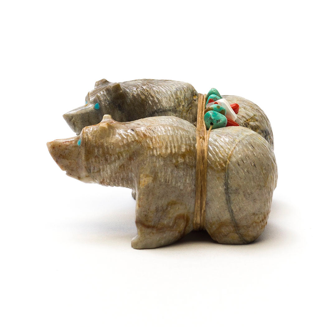 Bears happily journey to the land of the beehives where nutrient-rich larvae and sweet honey from the hives will fill their bellies. Wise bears seek out the entire hive's contents for a complete meal. Each turquoise-eyed bear is wonderfully carved from Picasso marble and etched for lovely fur-effect. Together they measure approximately 2 1/8" long, 2" wide and 1 3/8" tall.