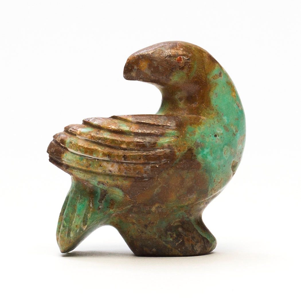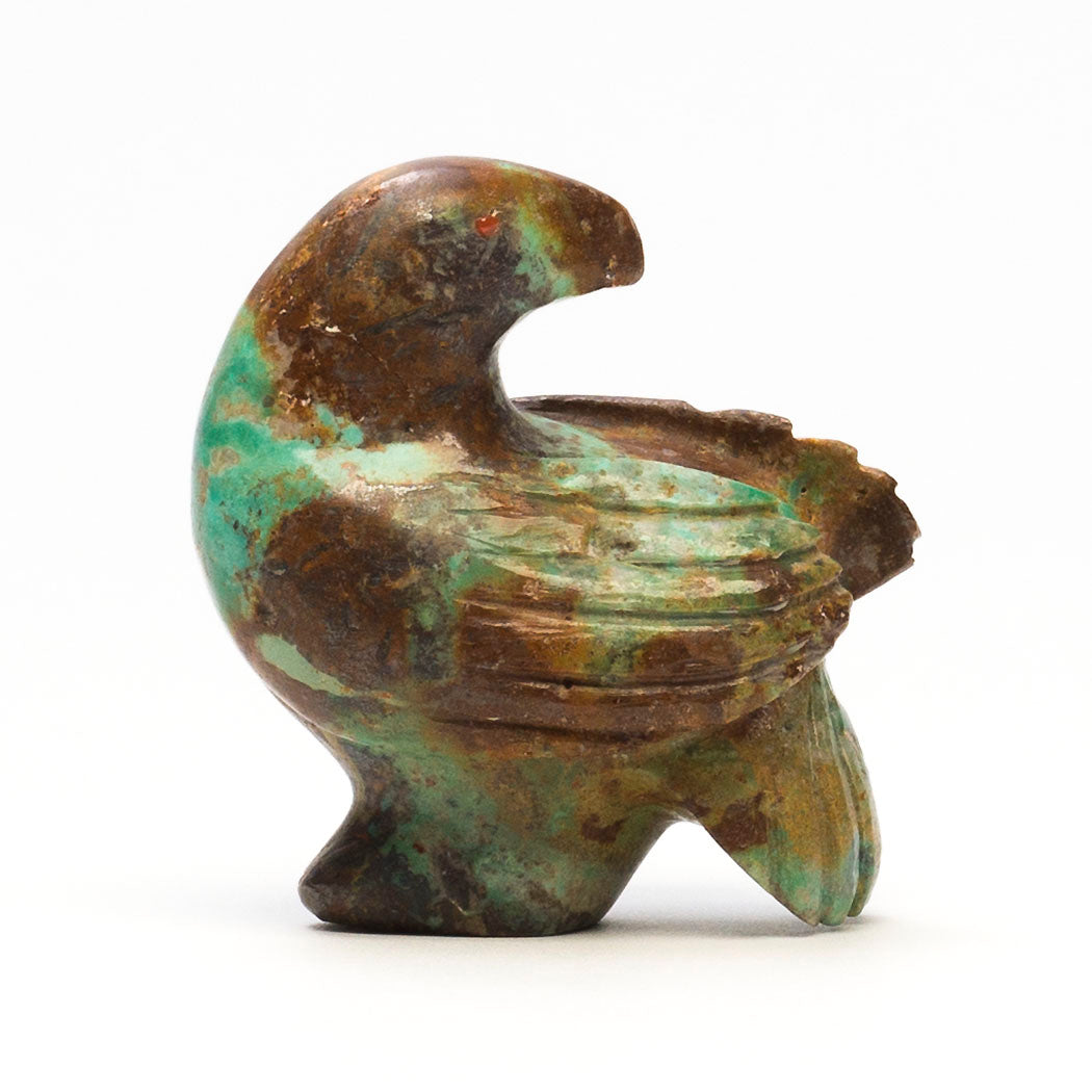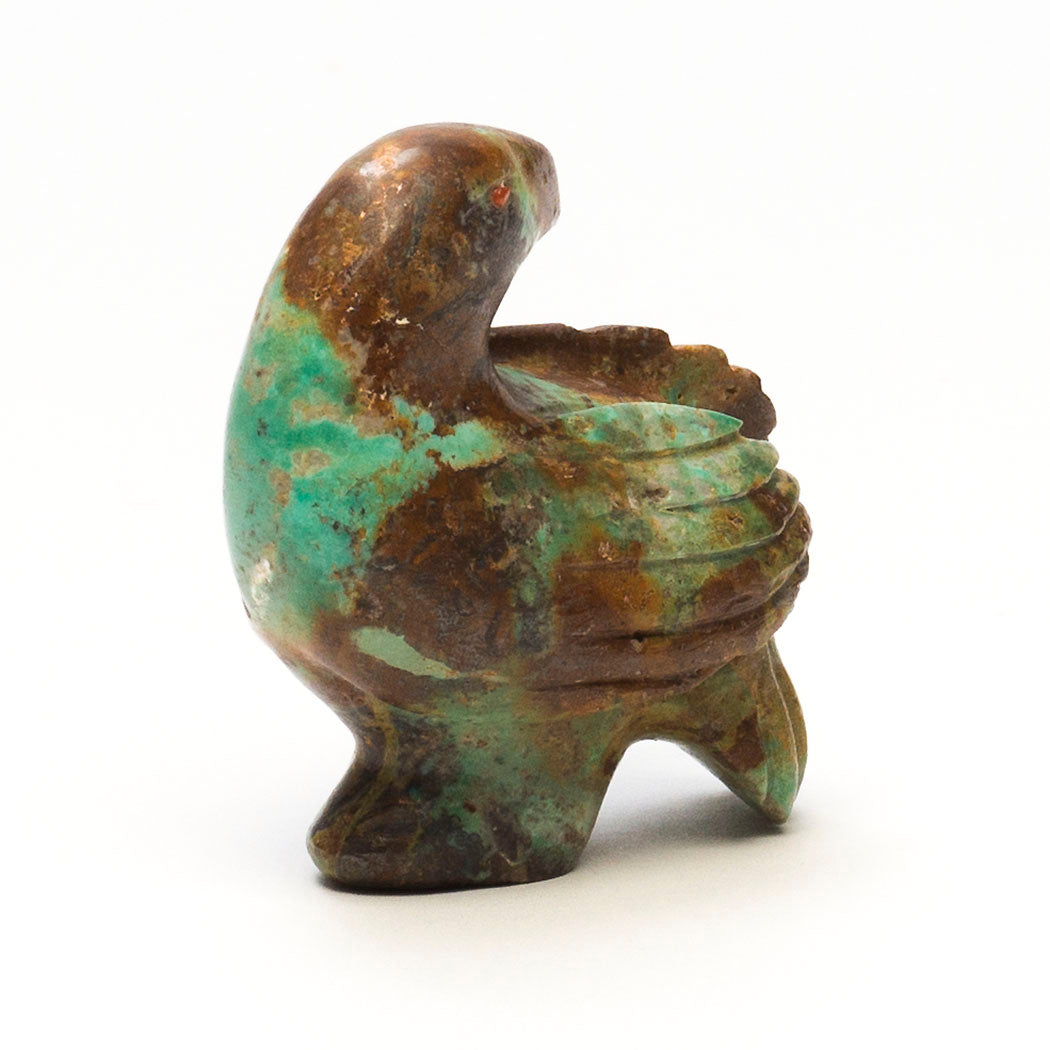 Eagle) has smooth rounded curves, incised lines for plumage, etched eyebrow detail and a tiny, natural cavity on the breast region. Pretty matrix compliments the turquoise specimen the way Mother Earth intended. About 2" long, 1" wide and 2 1/8" tall.
