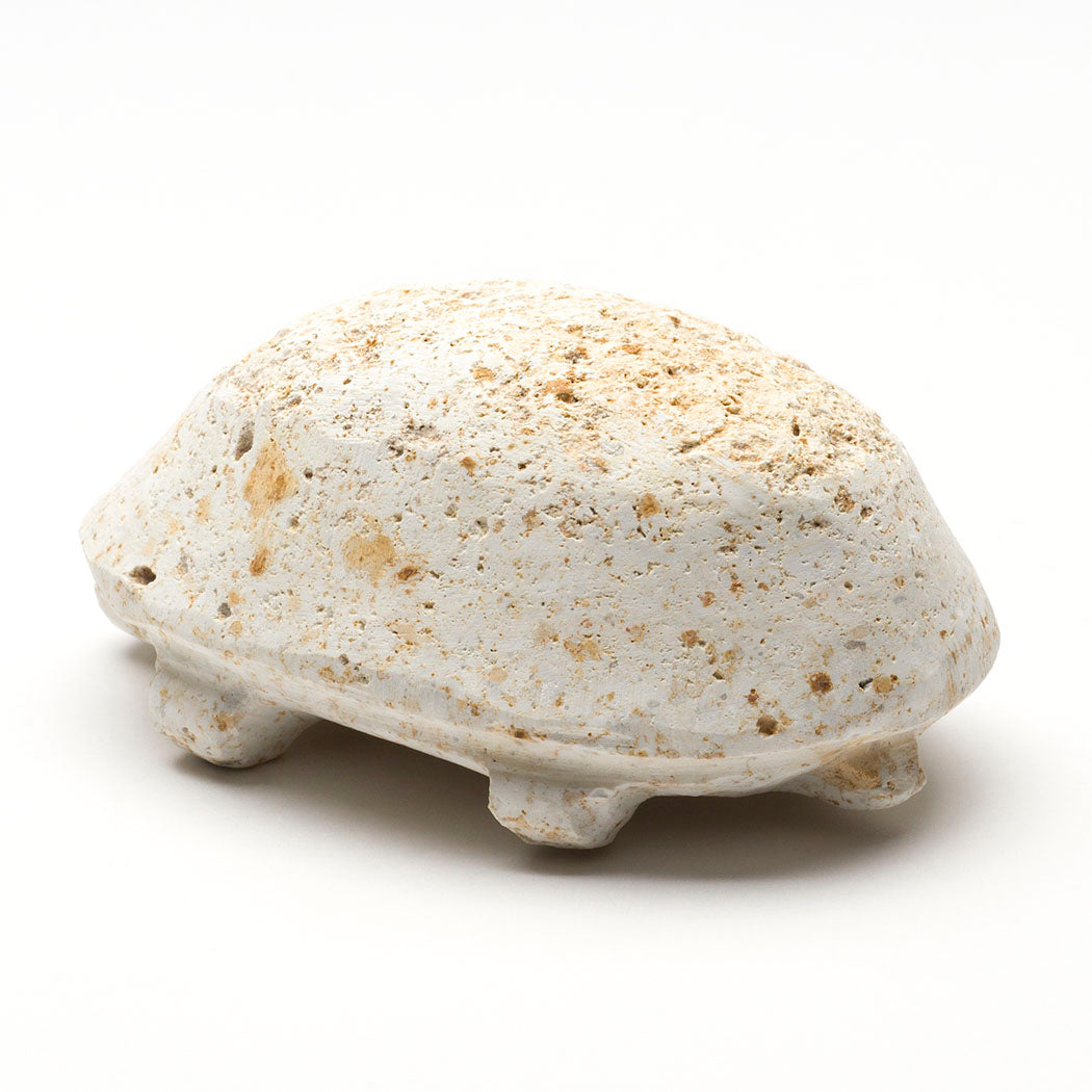 Slow-moving reptiles like turtles teach us to walk patiently in life because a steady and realistic pace leads to success. Salvador Romero's shy Turtle is carved from found stone to a dimension of approximately 3 3/4" long, 2 3/8" wide and 1 3/4" tall. We love the carapace's smooth sides while the tip top is nice and rugged.