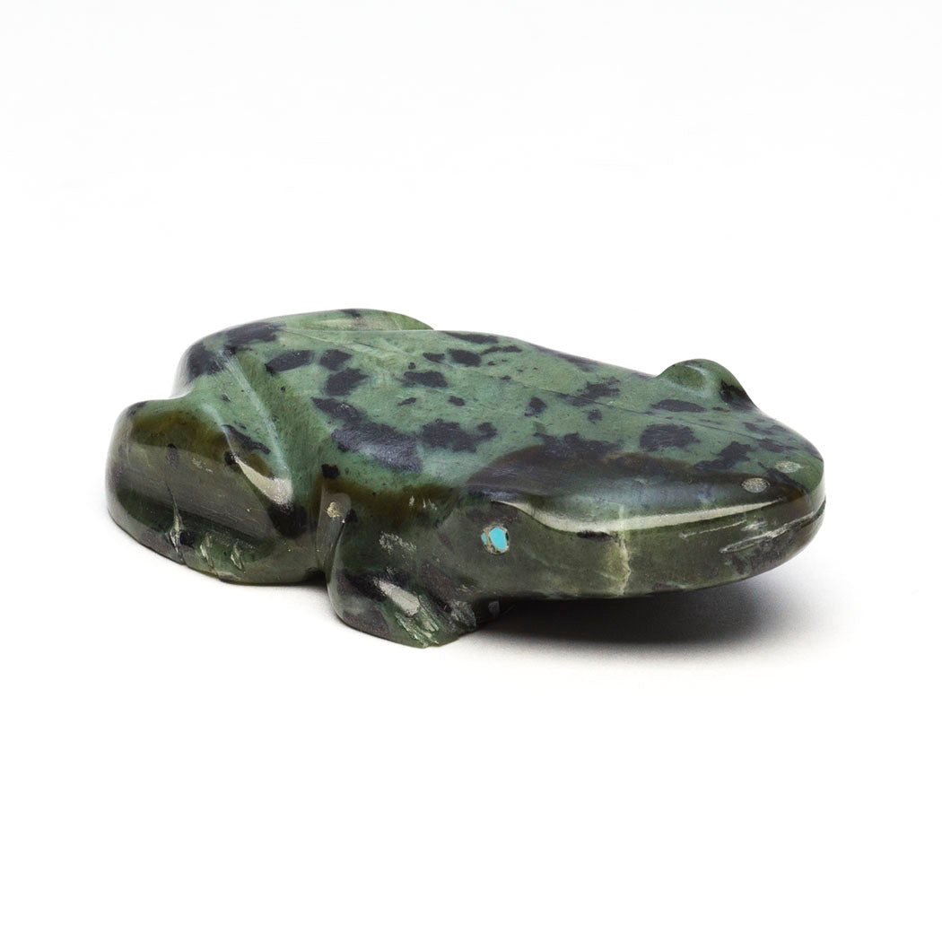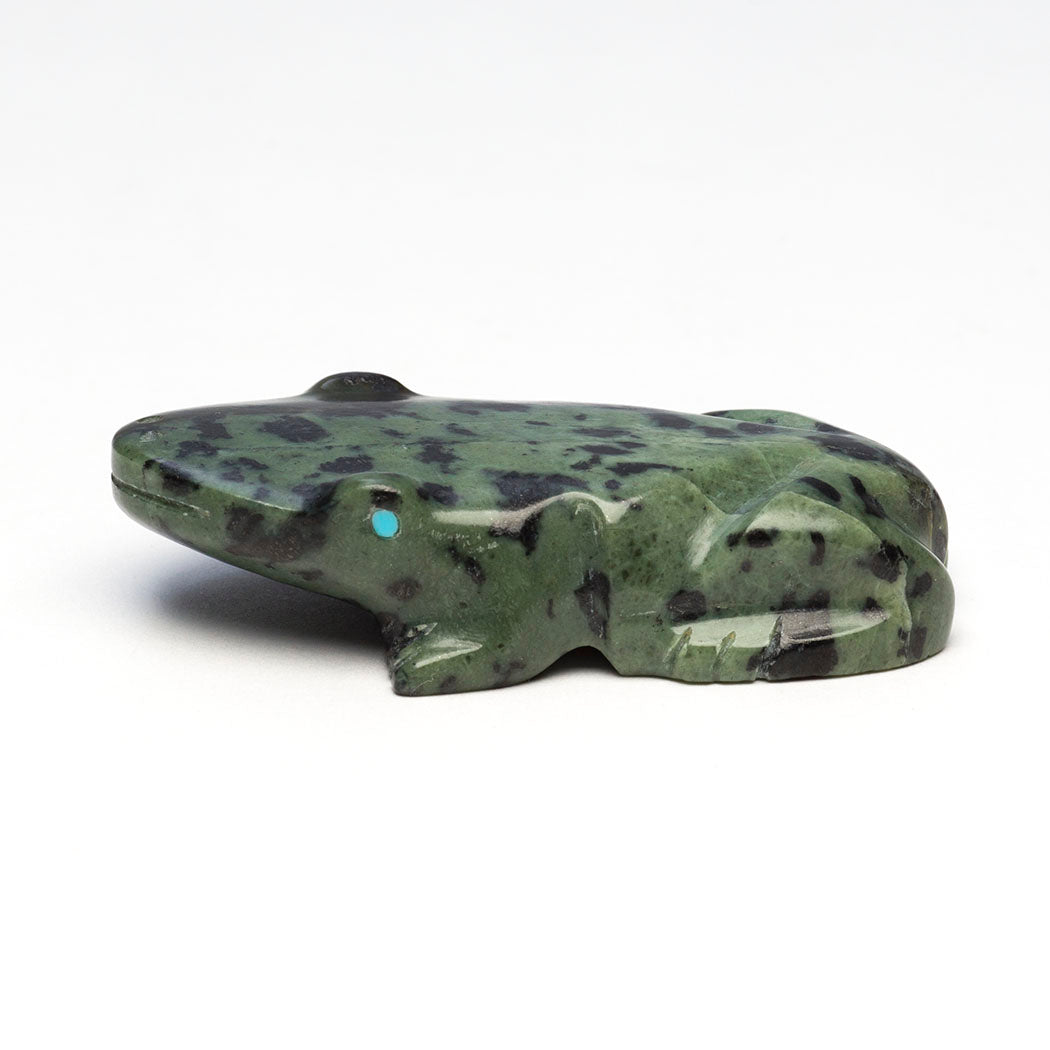 Frog (Dakkya) is a sign of water. Water is life. In Zuni Pueblo, frogs often appear on prayer bowls since many of the Zuni prayers and dances ask for water in the form of rain or snow. Cleansing is also a part of Frog’s medicine as well as emotional and physical healing.