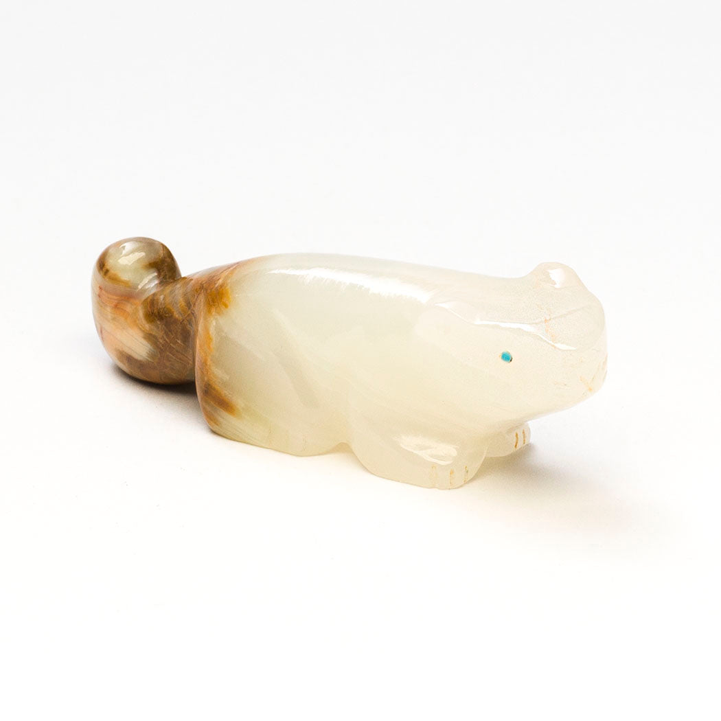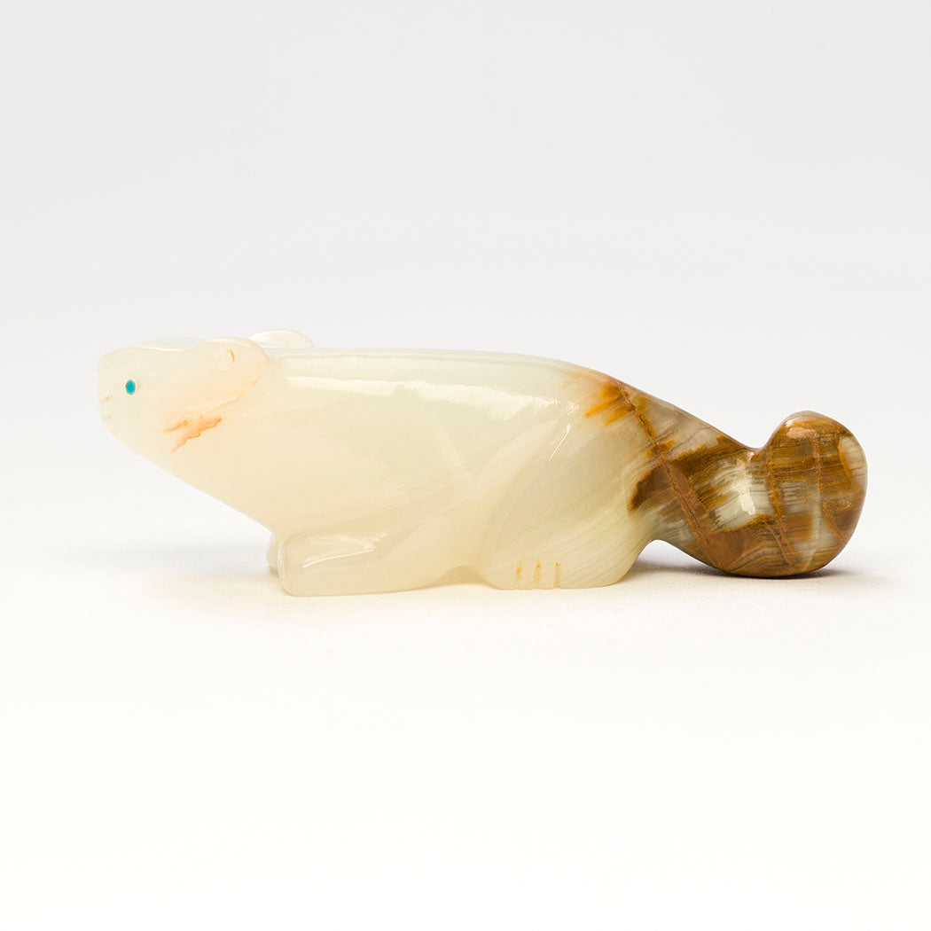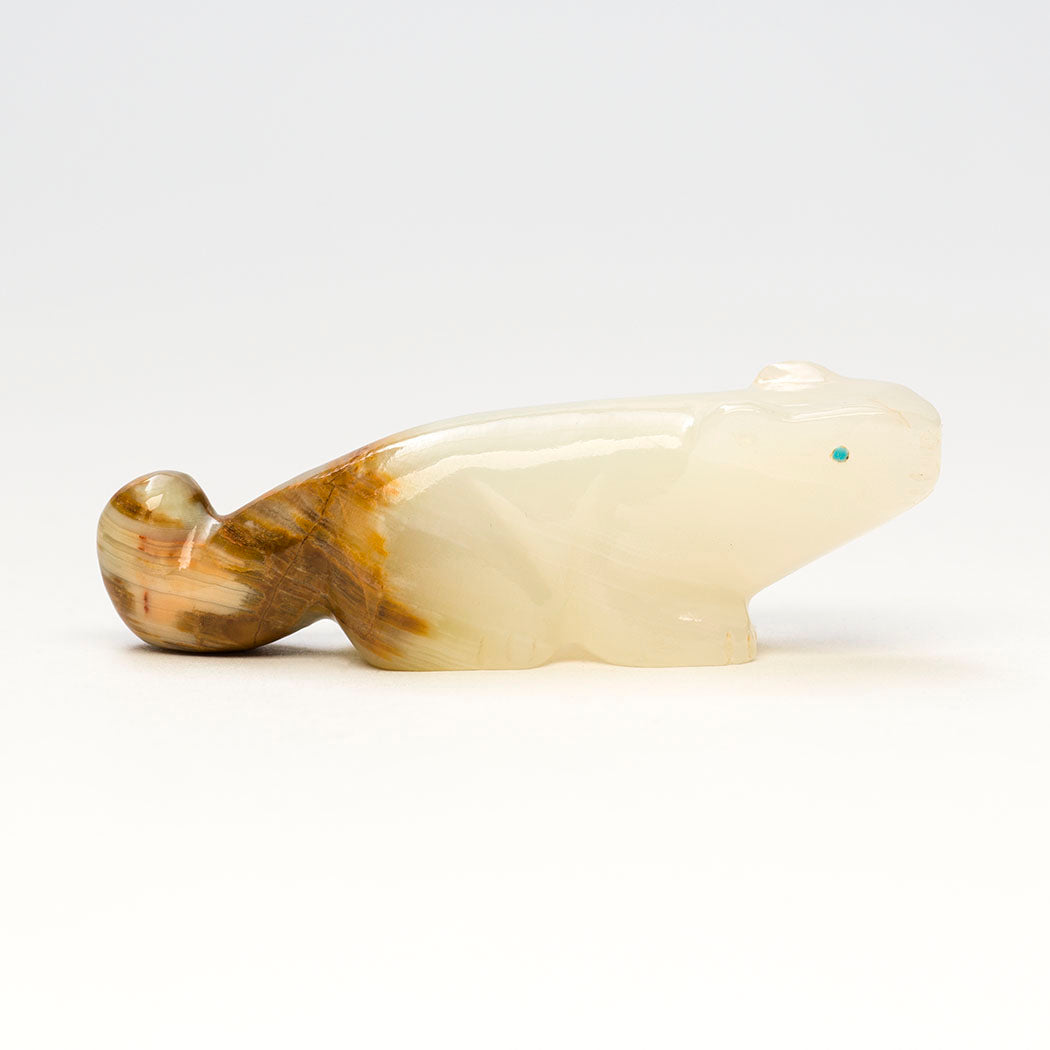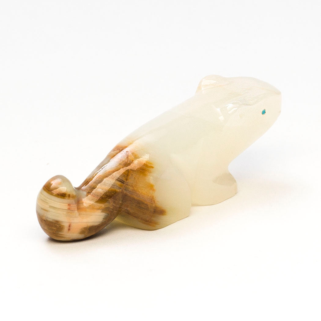 Elk because mountain lion is the best hunter. They are also carried as a protector when traveling. David Chavez, Jr.'s wonderful feline from onyx is beautifully polished. Discerning eyes are from turquoise inlays. About 3" long, 3/4" wide and 1" tall.