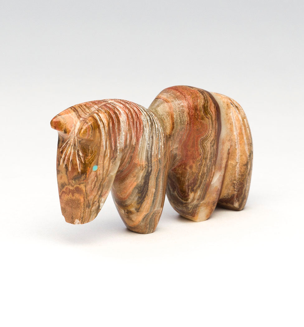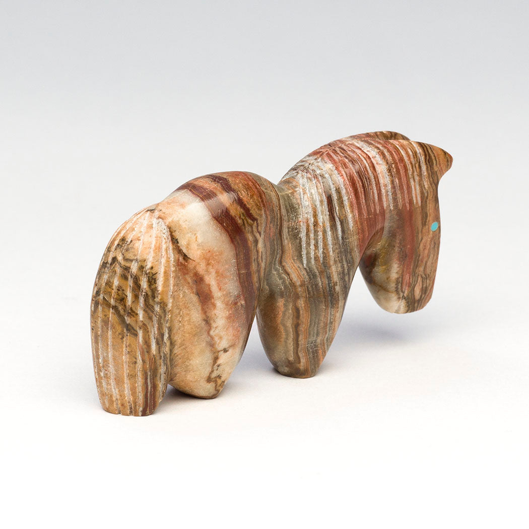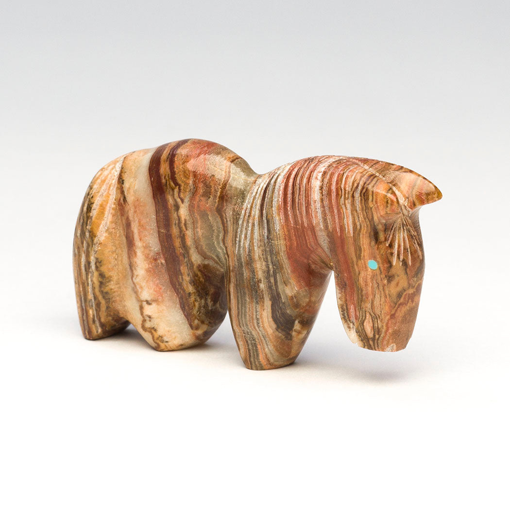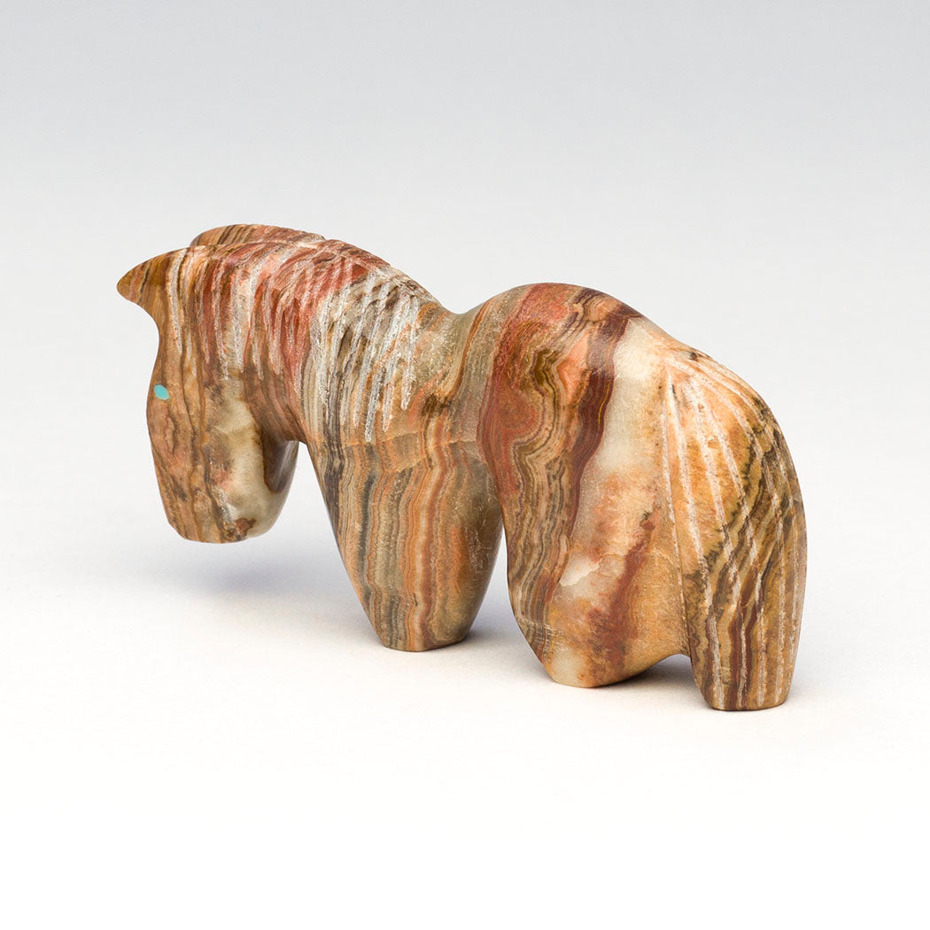 Horse sweetly carved from onyx with an incised mane, forelock and tail, which makes this horse quite special. About 2 3/8" long, 1/2" wide and 1 1/4" tall.