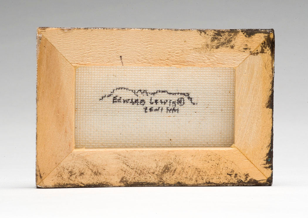 Colorful acrylics are masterfully rendered by Zuni Pueblo artist Edward Lewis in a miniature Eagle painting. His artistry details the comprehensive view of an eagle who can see the smallest of details from a great distance. Indigenous cultures honor them as living, sacred symbols of power. Eagles teach us our spiritual and physical journey in life must be in focus. About 2" by 3", signed by the artist. The wonderful little painting comes with a complimentary tiny wooden easel.