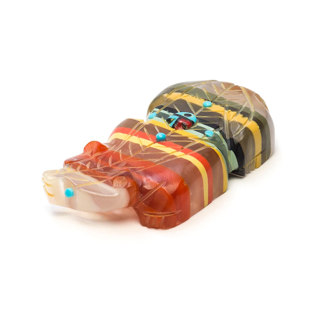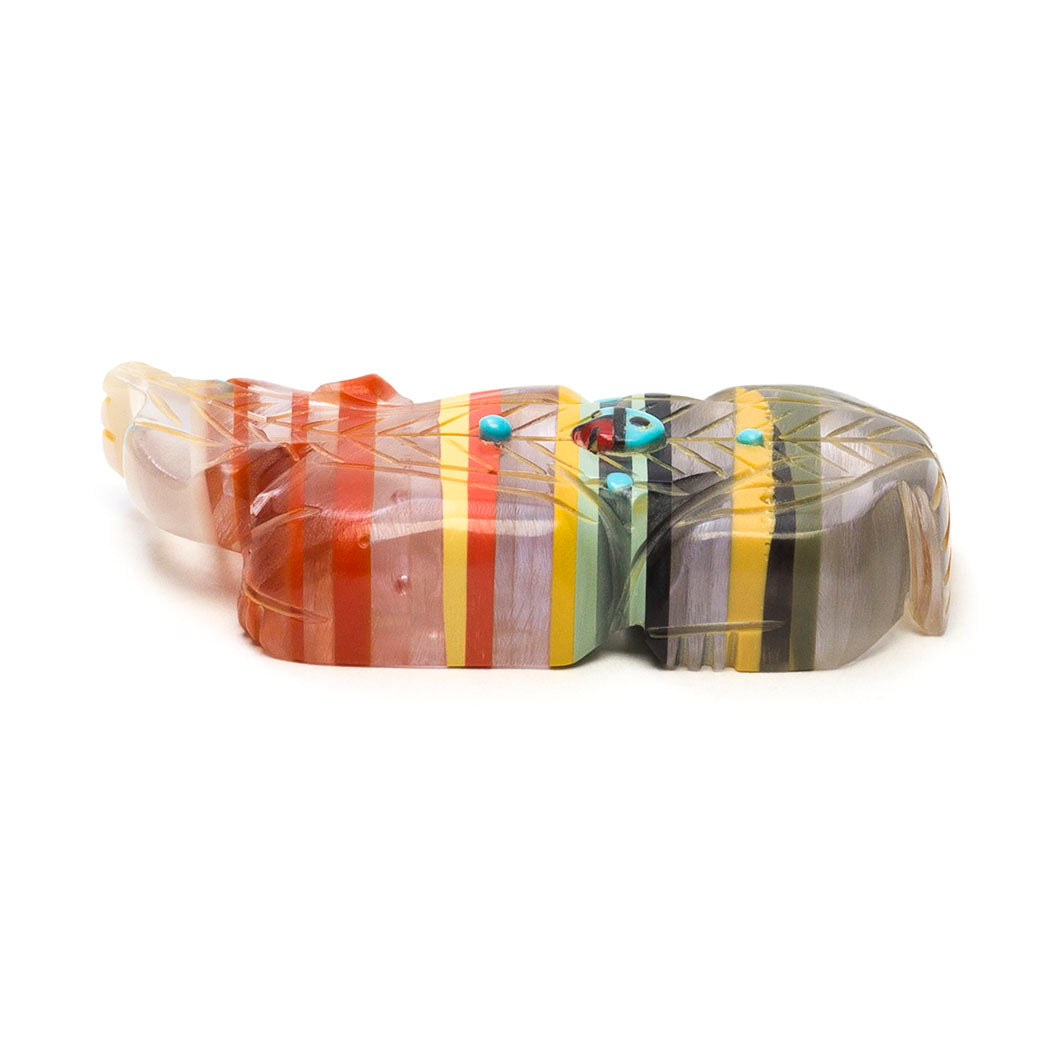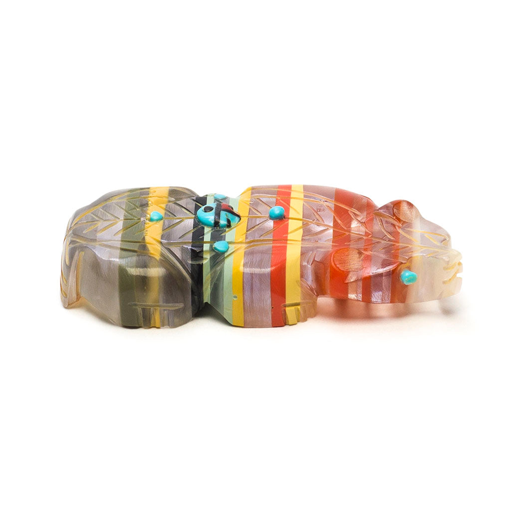 Zuni fetishes are animal carvings that have been used by the A:Shiwi (The People) for over a thousand years. By honoring the animals and acknowledging their special "medicine" (their natural traits), we may summon our own similar attributes. Fetishes are sometimes used that way today. We can focus on the qualities we have that are like a certain animal. We can carry a fetish with us or keep it on a bedside table. Fetishes may be used to discover, enhance, or simply remember a connection with nature. Each of us has our own reason for taking care of a fetish. Be mindful and respect the spirit of the animal that your fetish represents.