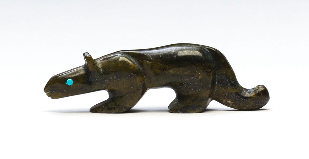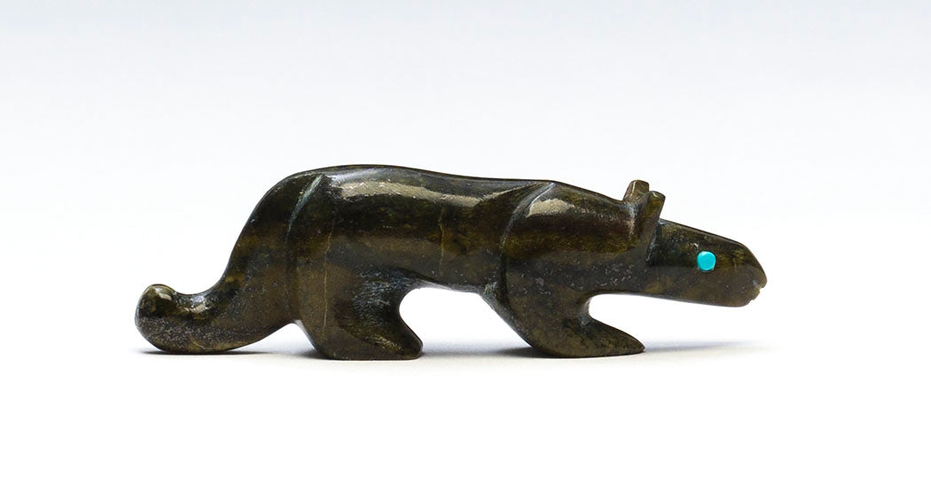Zuni fetishes are animal carvings that have been used by the A:Shiwi (The People) for over a thousand years. By honoring the animals and acknowledging their special "medicine" (their natural traits), we may summon our own similar attributes. Fetishes are sometimes used that way today. We can focus on the qualities we have that are like a certain animal. We can carry a fetish with us or keep it on a bedside table. Fetishes may be used to discover, enhance, or simply remember a connection with nature. Each of us has our own reason for taking care of a fetish. Be mindful and respect the spirit of the animal that your fetish represents.