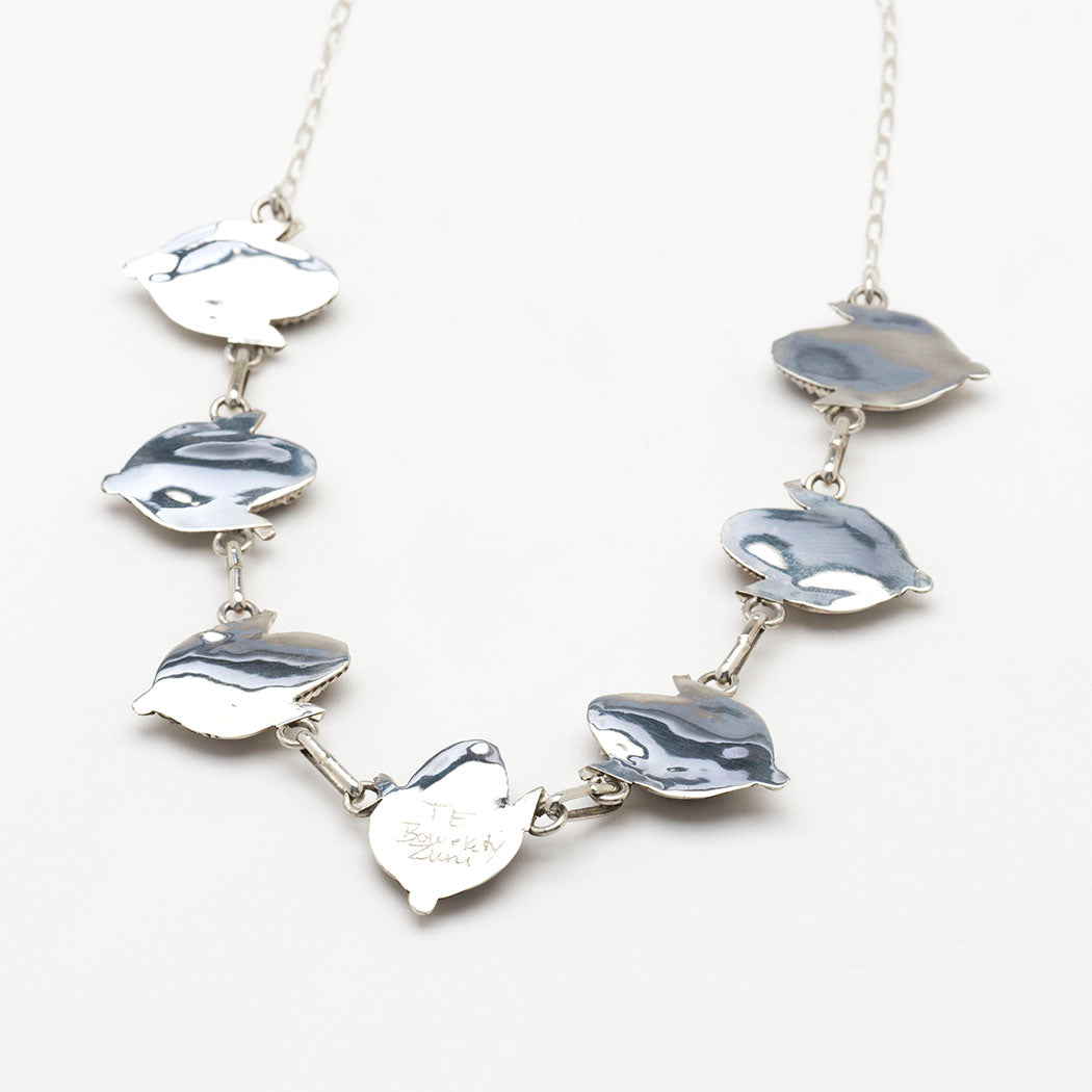 Not all Native Americans make silver and turquoise jewelry. The tribes in the Southwest who are especially known for their jewelry are the Zuni, Hopi, Kewa (Santo Domingo) and Diné (Navajo). The Zuni are known for their very intricate stonework and almost never do plain silver jewelry. The most traditional Zuni style of jewelry is called petit point, which can be identified by tiny turquoise stones each supported in its own bezel, or metal "sleeve." It is extremely time-consuming work and is very delicate in appearance. The Zunis are known for using sterling silver and natural turquoise from the Sleeping Beauty Mine. The work is priced by the amount of handiwork, not the weight of the silver or the value of the turquoise.