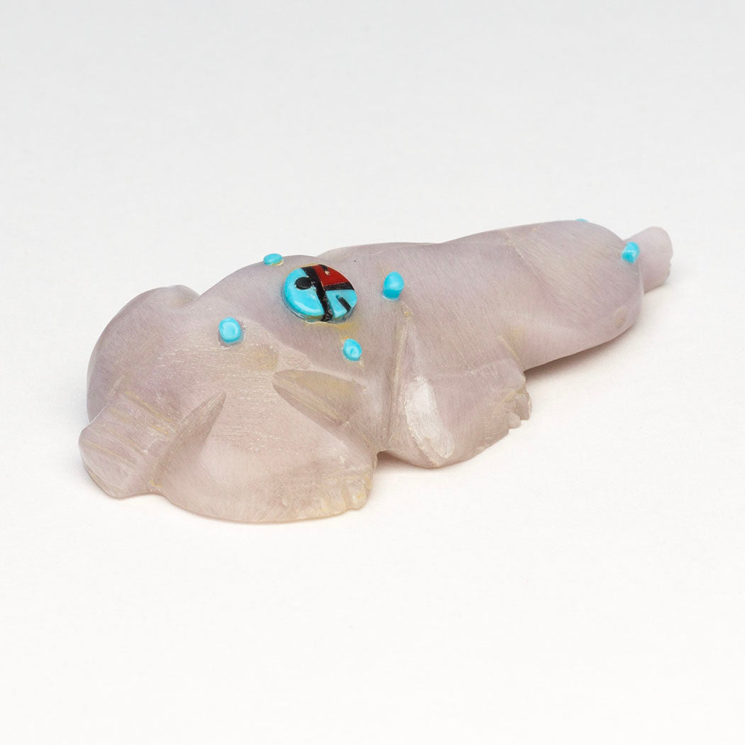 Zuni jeweler Don Dewa's marvelous workmanship is celebrated in a high-quality sterling silver cuff bracelet. Representing a balance of the elements, two traditional Zuni Sunfaces are presented in his signature spinner design where each Sunface station can rotate to the desired side, so cool. Inlaid stations are set with lovely red coral, vibrant turquoise, rich pen shell and iridescent mother-of-pearl. An