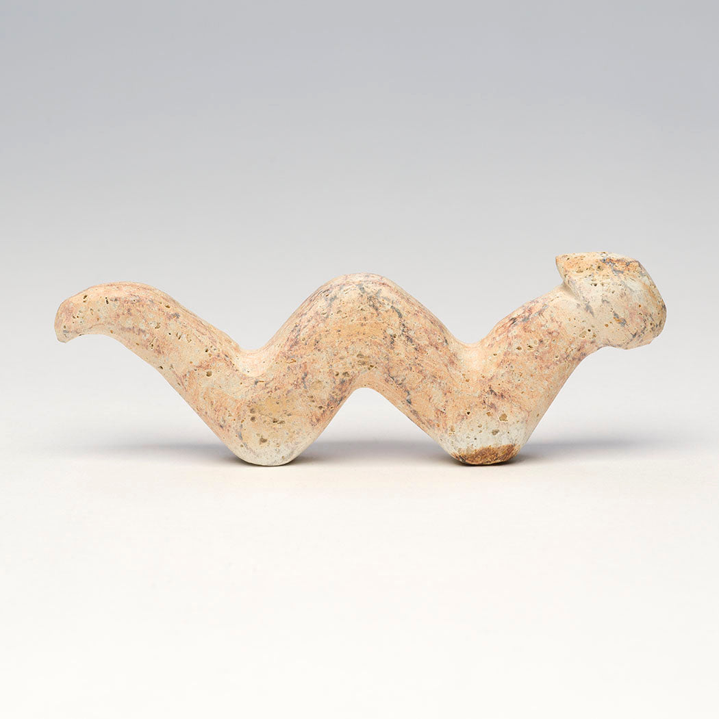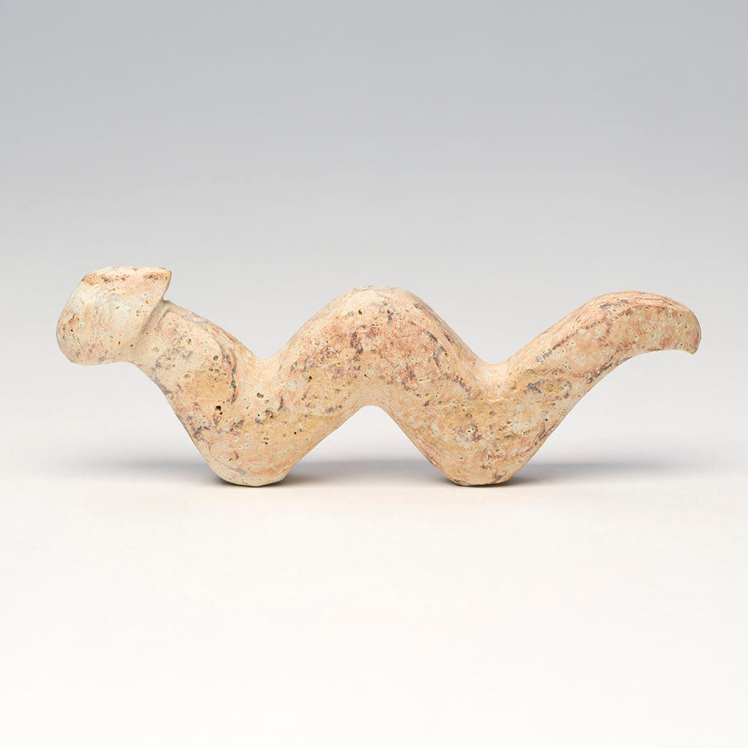 The Cochiti People believe Avanyu is a sacred water serpent and a vital guardian of water ways. Sightings have occurred near the Cochiti Lake area. The serpent's body forms the flowing Rio Grande and its tributaries in New Mexico. For A:Shiwi (The People) Kolowisi is the traditional horned or feathered serpent who is also a guardian of water sources and can move around aquifers and into the Zuni River, Salt Lake or any body of water. He is very sacred and sometimes is brought into Zuni as a katsina. Salvador Romero's wonderful water serpent is carved from a found stone to a dimension of roughly 5 1/4" long, 5/8" wide and 1 5/8" tall.