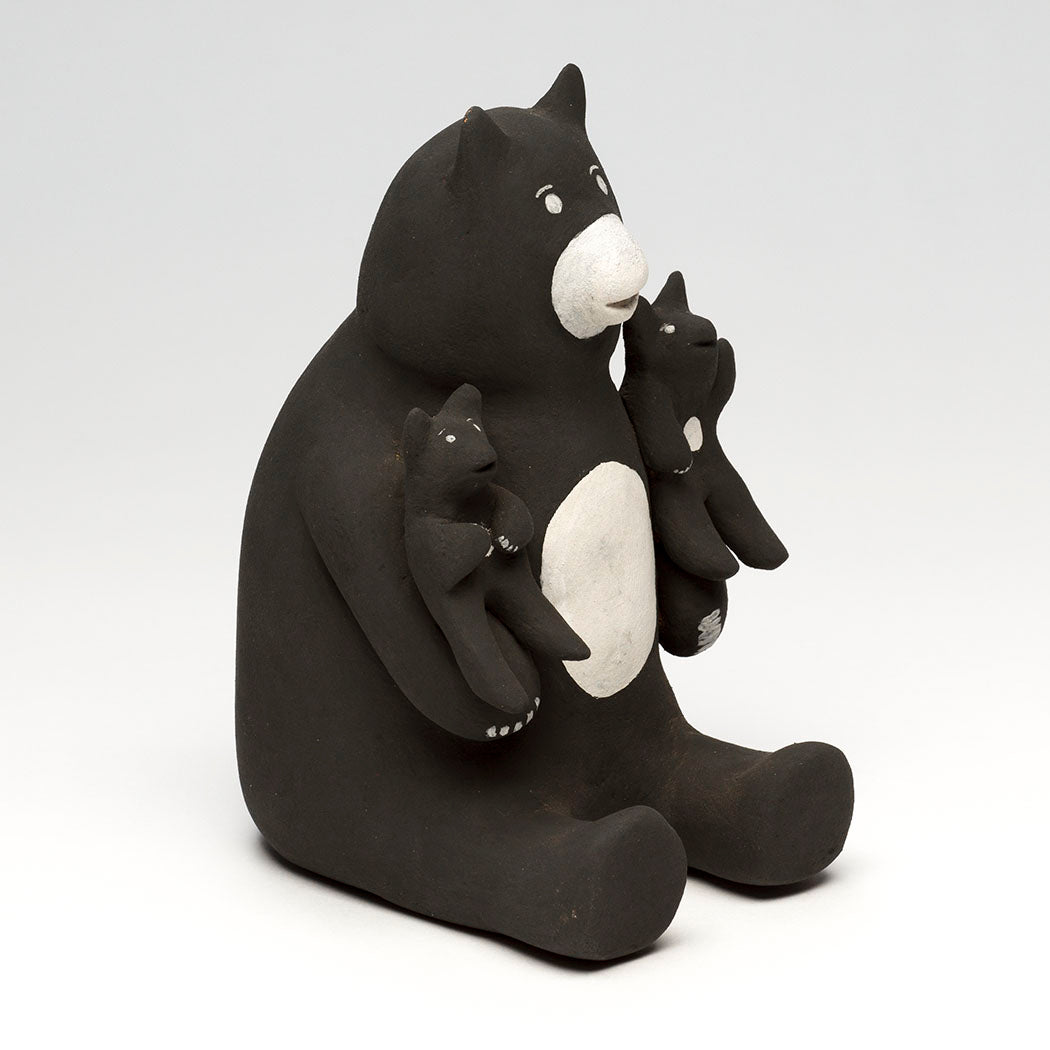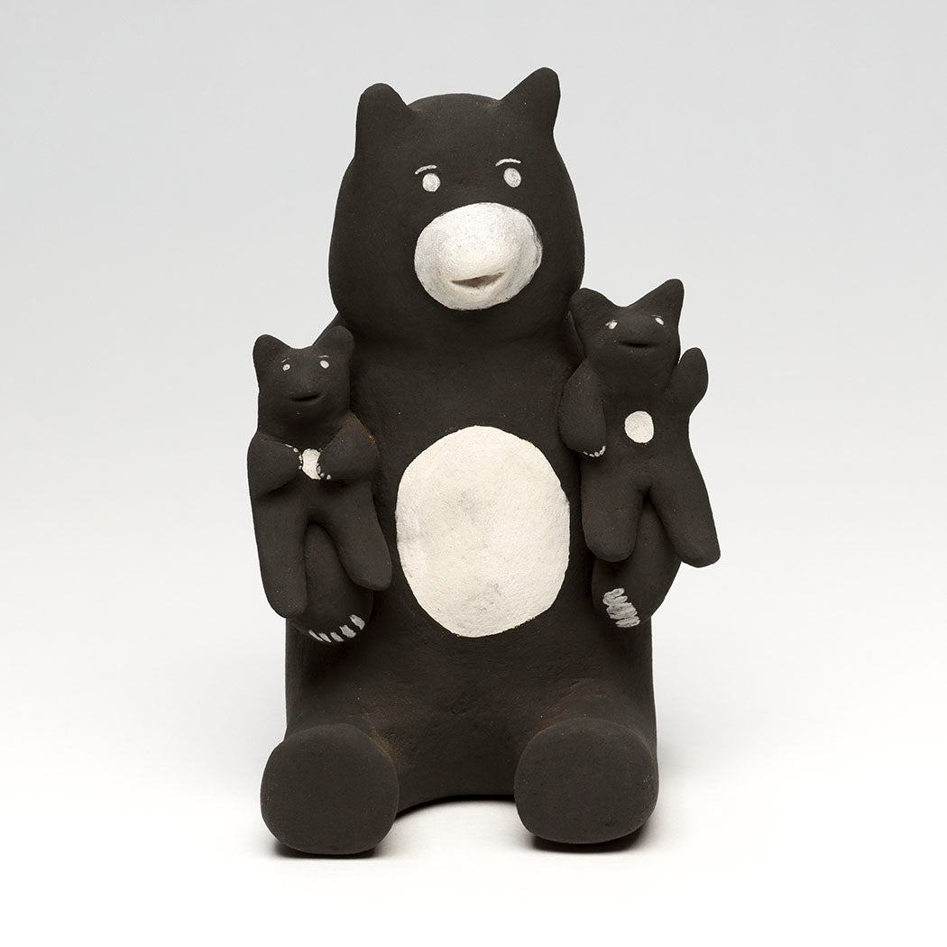 Bear storyteller pottery is hand built from natural clay and lovingly painted with rich pigments. Little cubs listen intently as a guardian bear recites the history and traditions of mighty bear ancestors. This wonderful and collectible clay work is signed by the artist and measures about 5 7/8" tall, 3 3/4" wide and 4 1/2" deep.