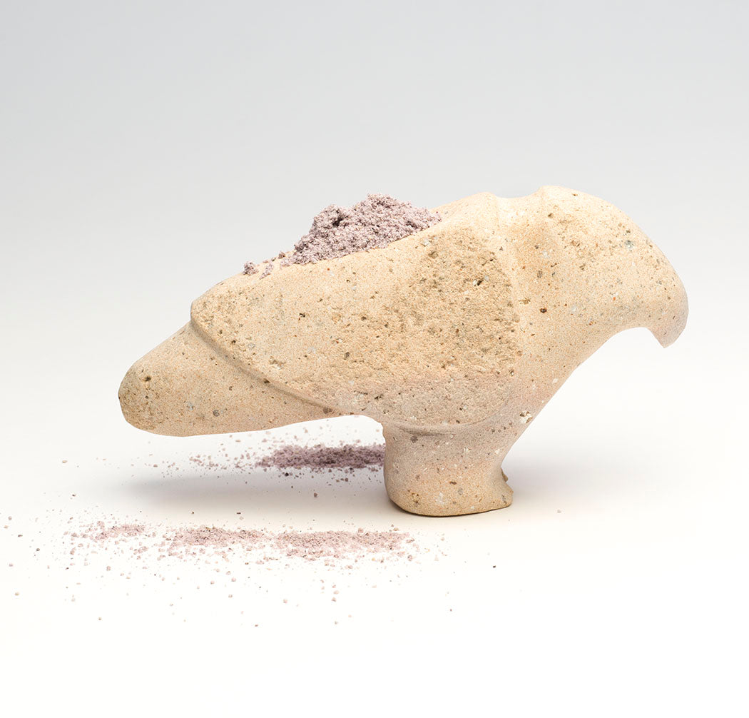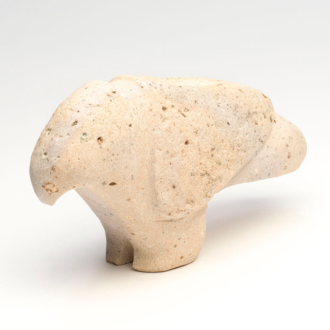 Salvador Romero has brought by a fabulous Raven offering bowl measuring approximately 6 1/2" long, 2 1/8" wide and 3 3/4" tall. He carved a depression into the back of the bird to serve as a designated area to place intentions or offerings. The raven with drilled eyes is sculpted from a good-looking found stone from the lands at Cochiti Pueblo. Salvador has been carving for over 30 years. Originally he started as a painter studying traditional painting at the Institute of American Indian Arts in Santa Fe, New Mexico.