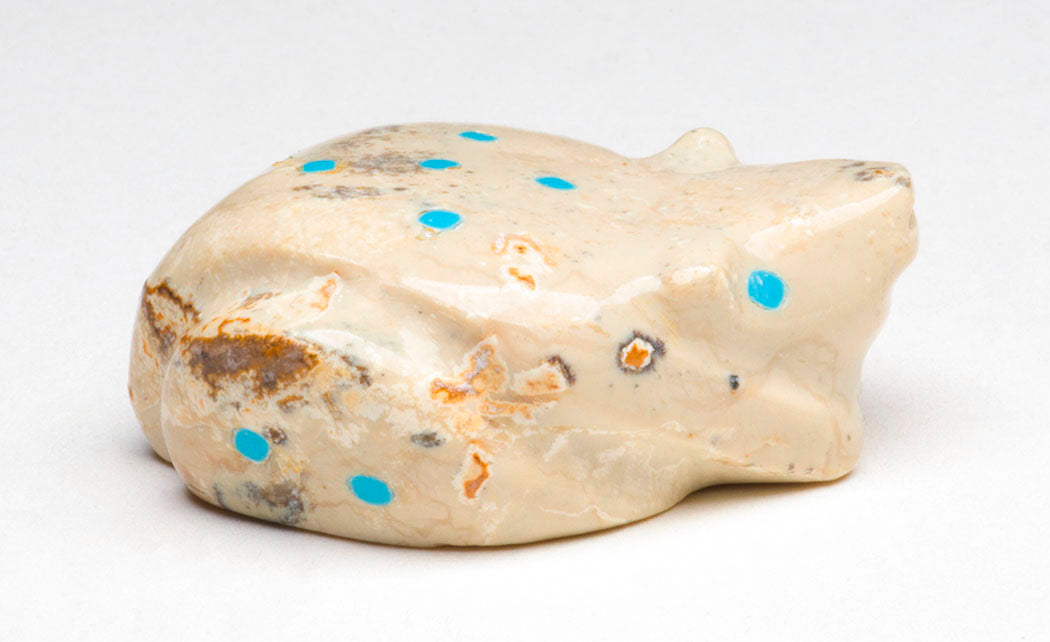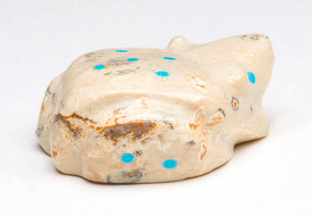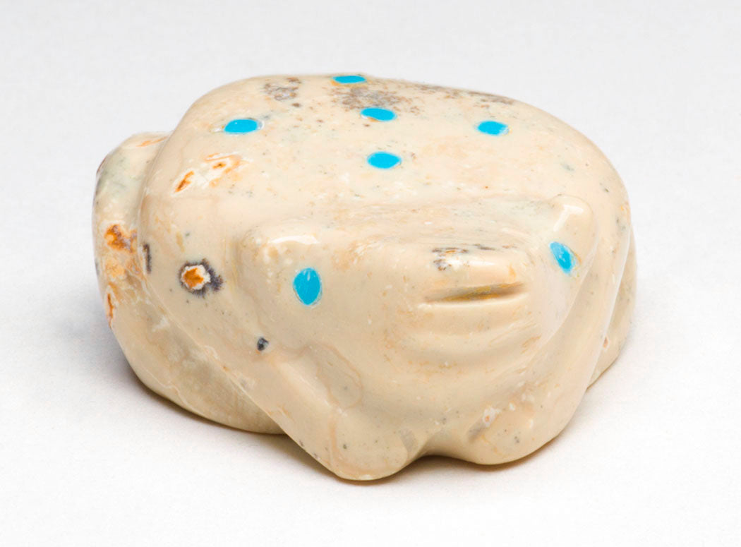 Frog. Turquoise inlays represent eyes and spots on this amphibian who is an important sign of water in Zuni Pueblo tradition.