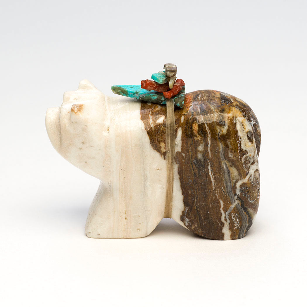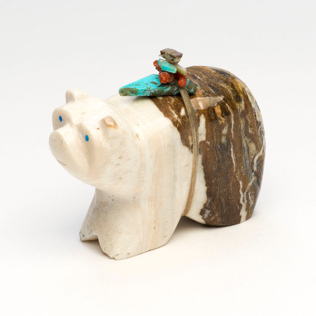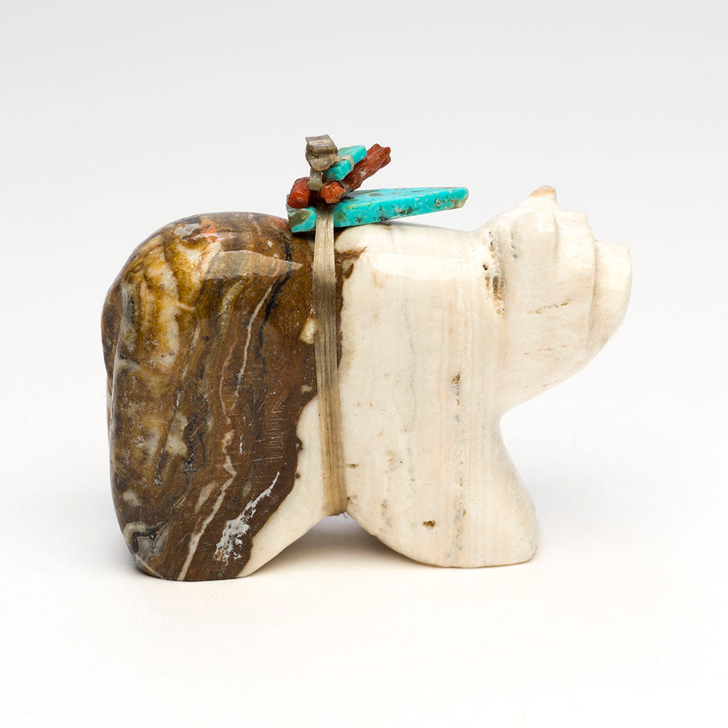 Bear (Anshe) was the principal animal for the Pueblo People and they are the most prevalent subject of Zuni fetishes. Bear fetishes are used for healing, protection, strength, journeying, mothering, hunting and gathering. Bear’s hibernation reminds us of the value of going within.