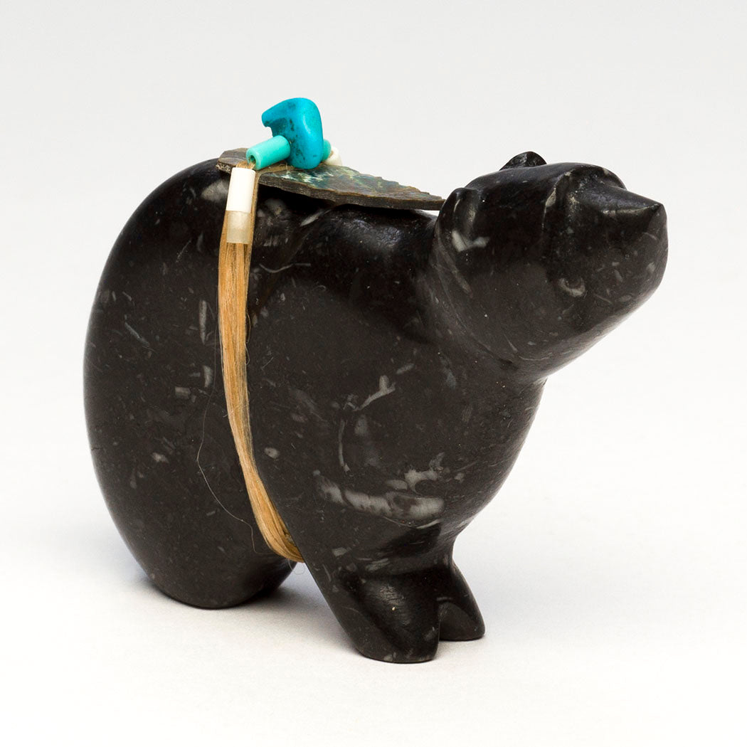 Bear (Anshe) was the principal animal for the Pueblo People and they are the most prevalent subject of Zuni fetishes. Bear fetishes are used for healing, protection, strength, journeying, mothering, hunting and gathering. Bear’s hibernation reminds us of the value of going within.