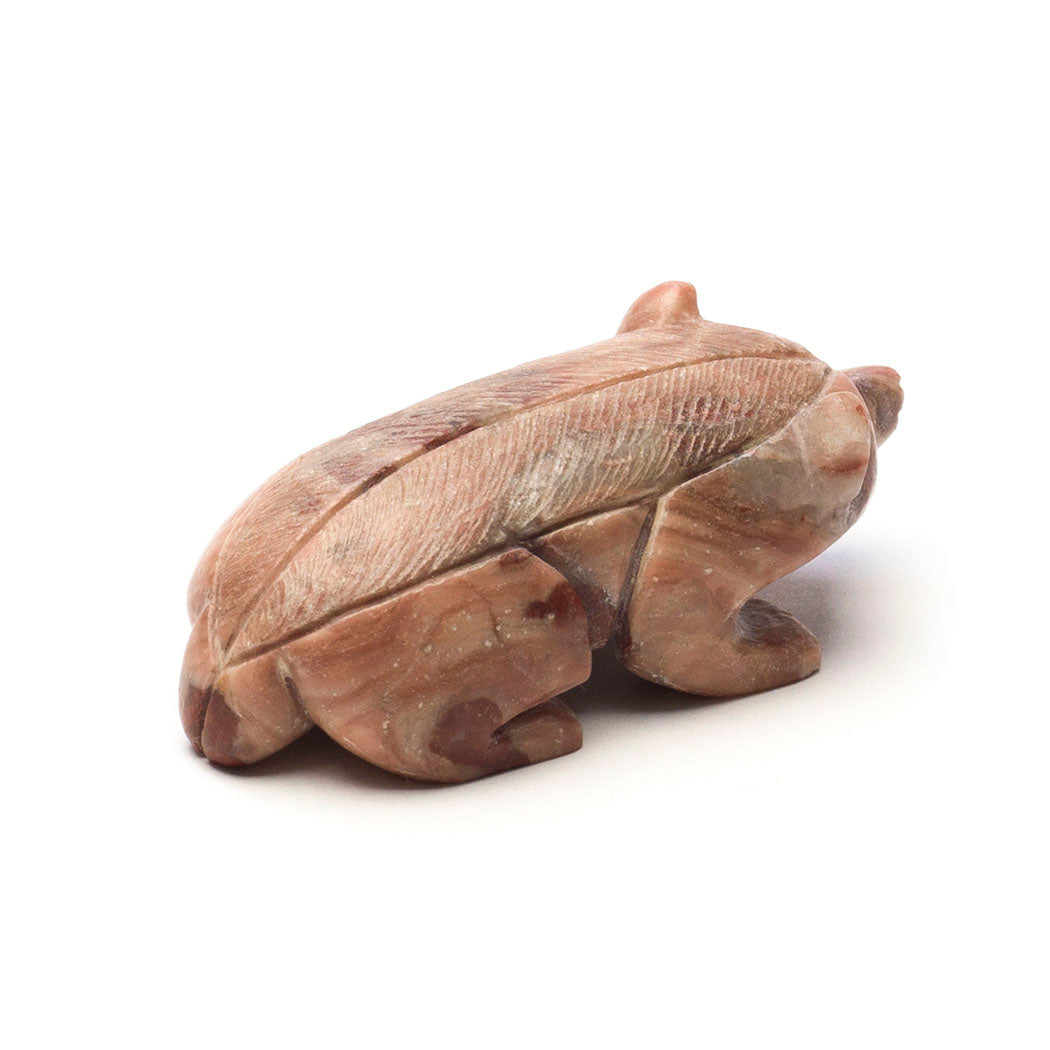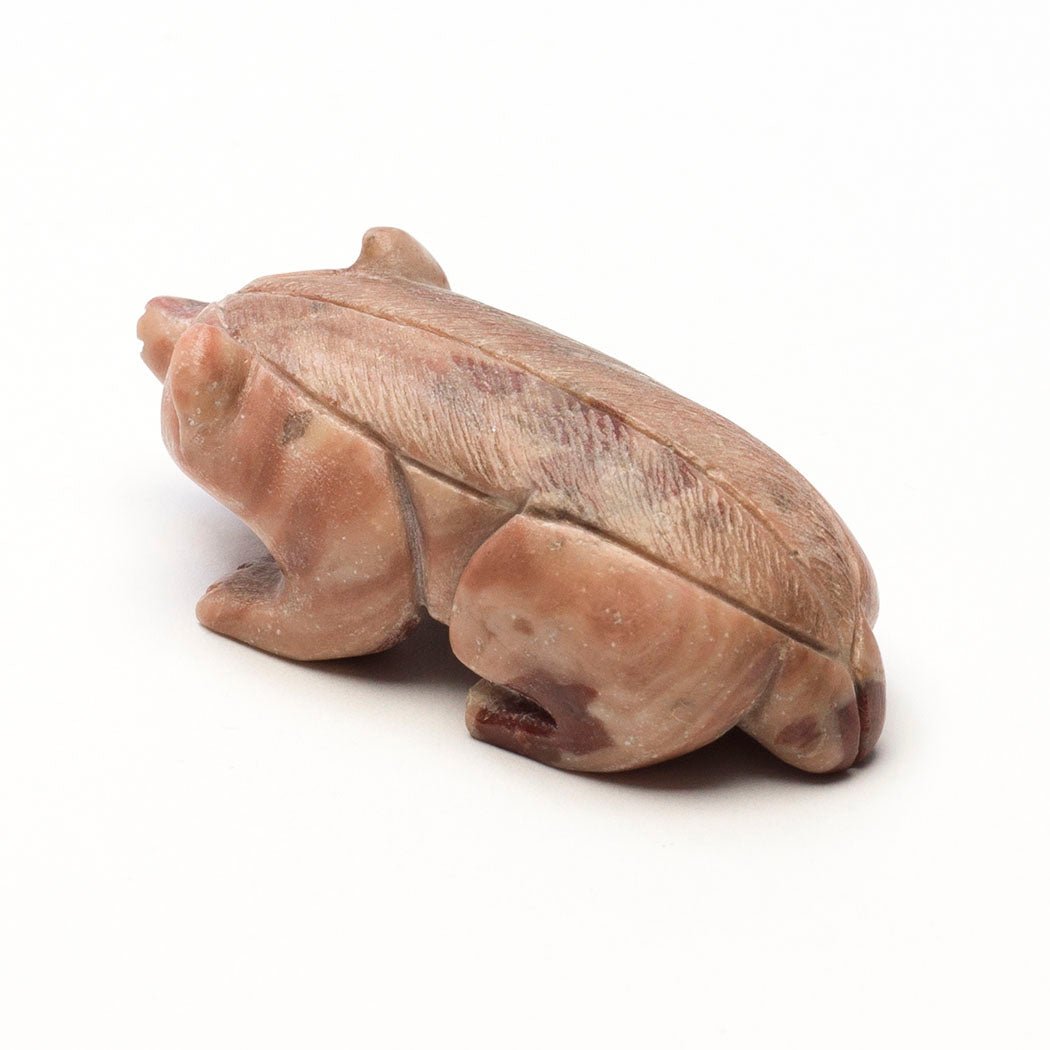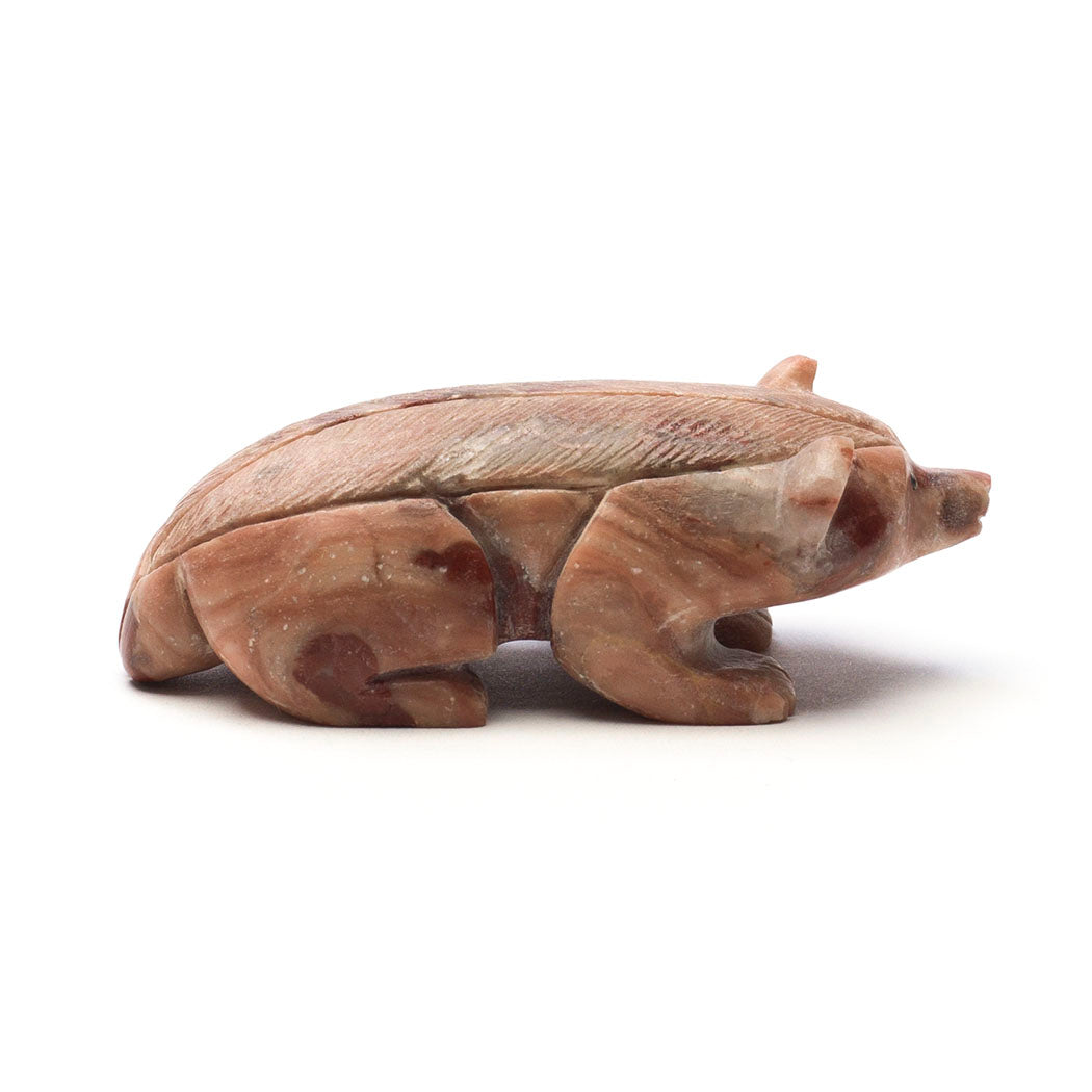 Badger may be diminutive in size but its unflinching tenacity makes it larger than life. Focused eyes are from jet inlays and intricate etching provides classic badger fur details. This intractable and enticing grassland critter burrows in at about 2 1/4" long, 1" wide and 7/8" tall, sculpted from dolomite.